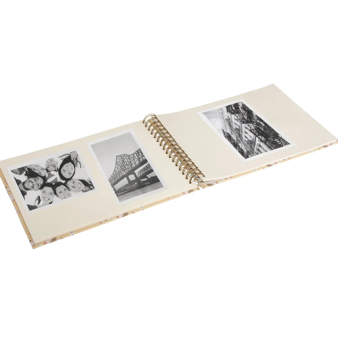 Cet album à spirales « romance » se distingue par ses dimensions et sa forme rectangulaire. Doté d’une couverture cartonnée, il comporte 80 pages qui vous permettront d’exposer 160 photos et d’en profiter en famille ou avec vos amis. Articulées autour de spirales métalliques, les pages se tournent très facilement!