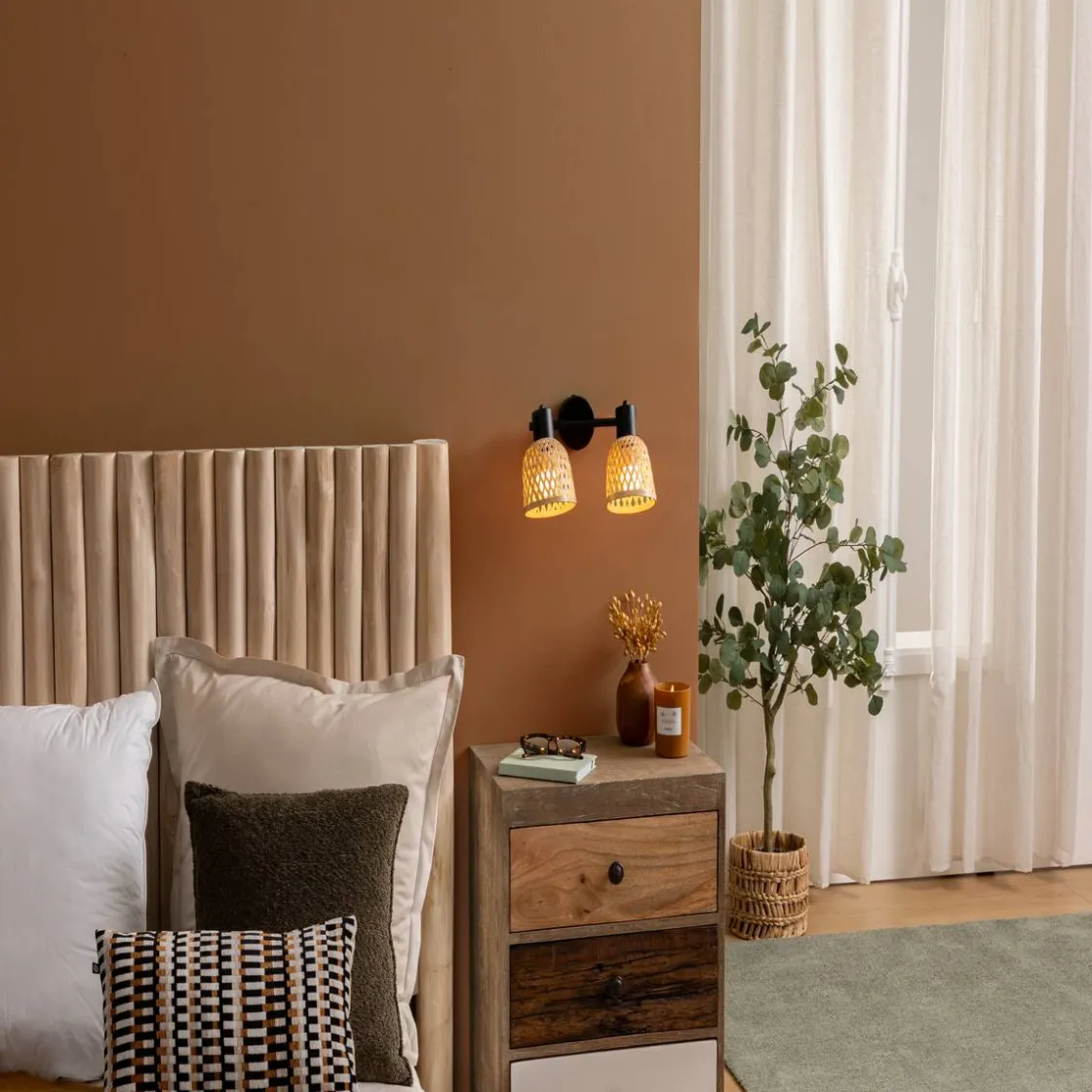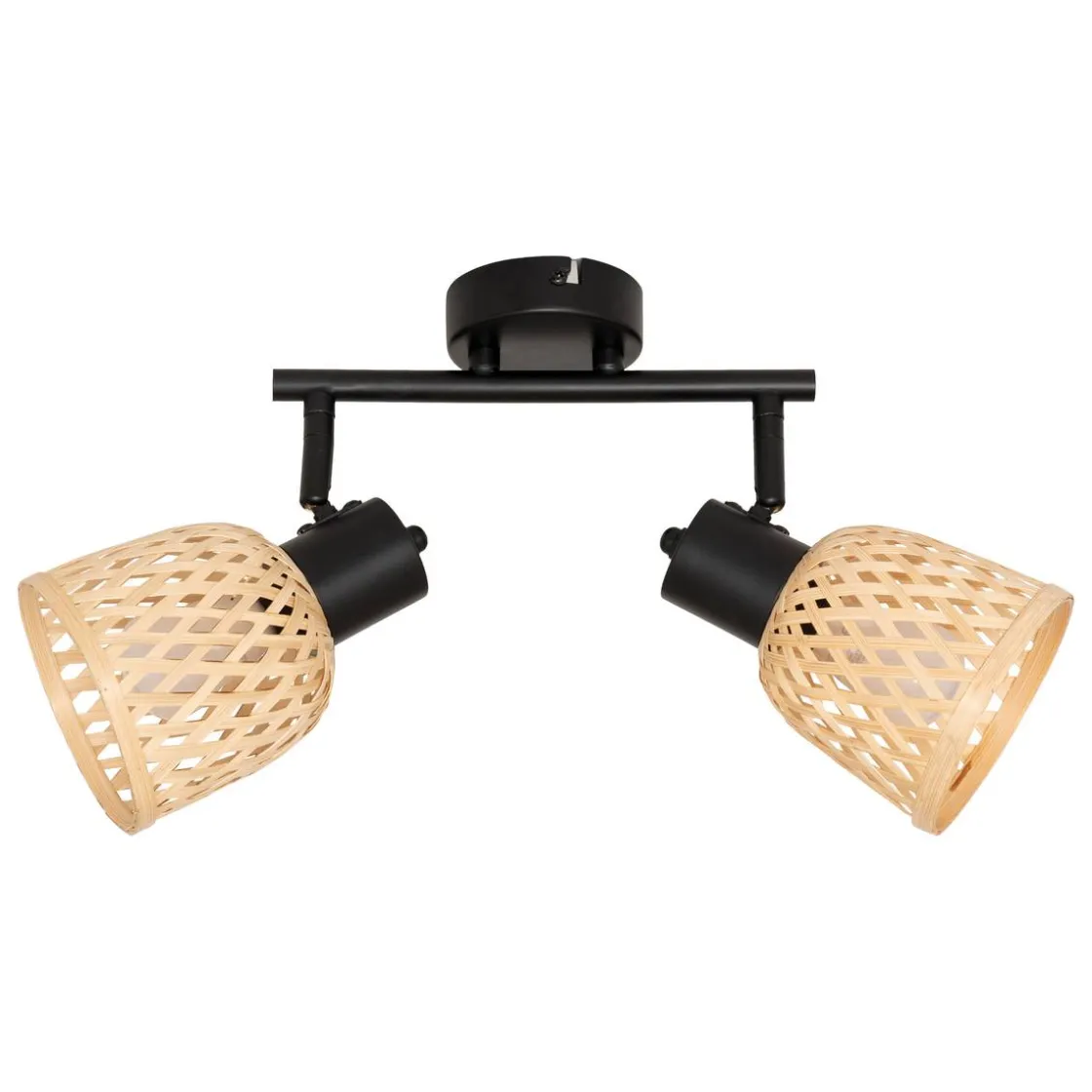 L’applique bois Lio 2 spots Atmosphera peut être utilisée en tant que plafonnier ou fixée au mur. Sa base cylindrique en acier teinté est équipée d’une barre transversale sur laquelle s’articulent 2 spots orientables. Dotés d’abat-jours en tressage de bambou naturel certifié FSC®*, ces spots produiront un jeu de lumière agréable dans une pièce, une fois équipés des ampoules de votre choix. Dans une entrée, une chambre ou une pièce de vie, vous pourrez orienter ces spots en fonction de vos besoins et les associer à du mobilier en bois ou en métal pour harmoniser votre déco.