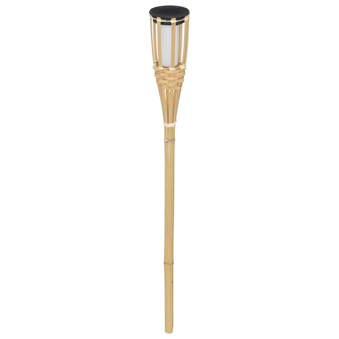 Cette torche en bambou se plante tout simplement dans la terre pour illuminer une allée ou une terrasse. L’ampoule LED fonctionne grâce à la batterie qui s’alimente seule à l’aide du panneau solaire situé sur le dessus. Après une charge complète, cette lampe aura une autonomie de huit heures.