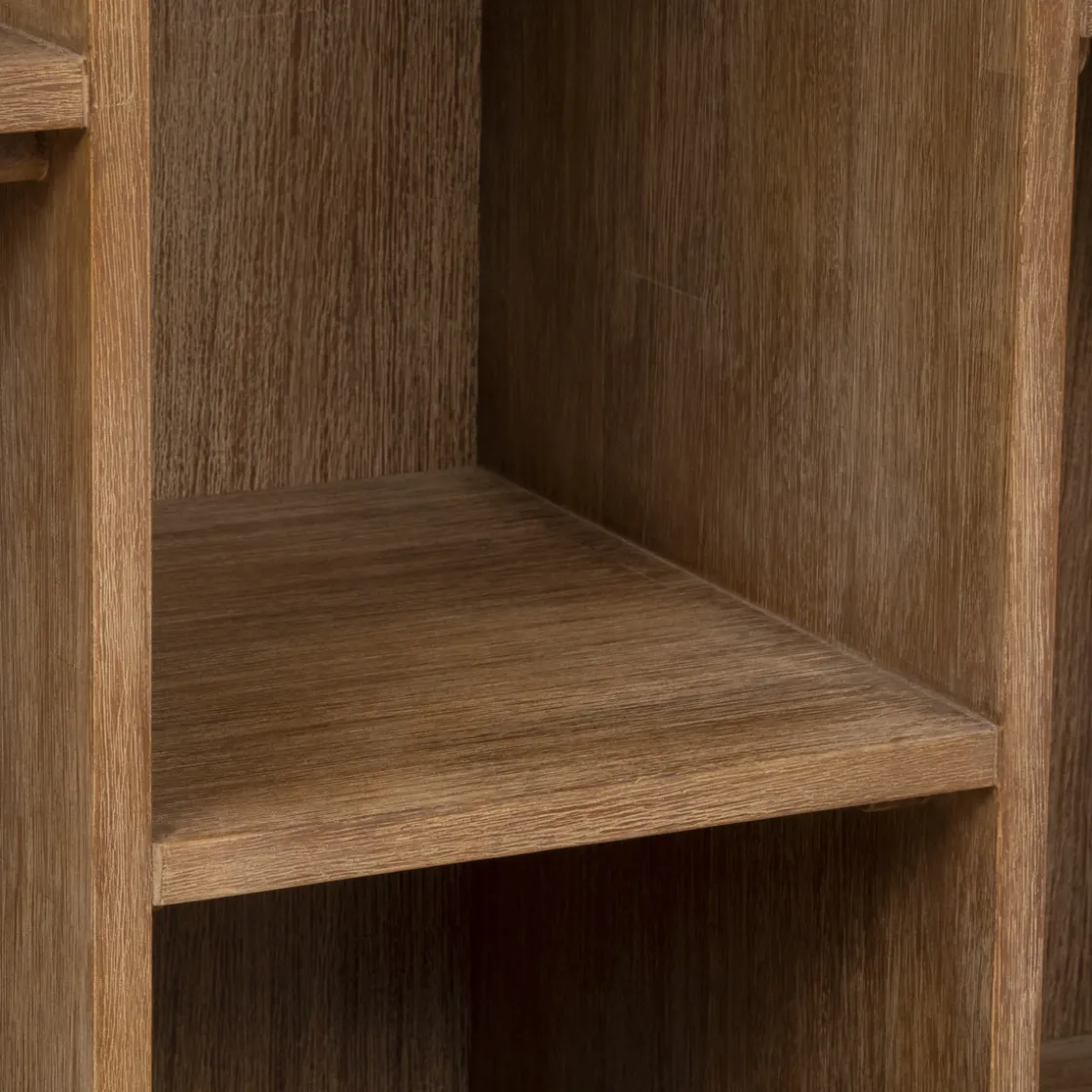 La bibliothèque « Sabor » se distingue par sa grande hauteur et ses 9 casiers asymétriques. Réalisée en bois d’acacia, elle offre un placard équipé de 2 portes à finition cannelée dans la partie inférieure, qui vous permettra de vous organiser sur 2 niveaux.