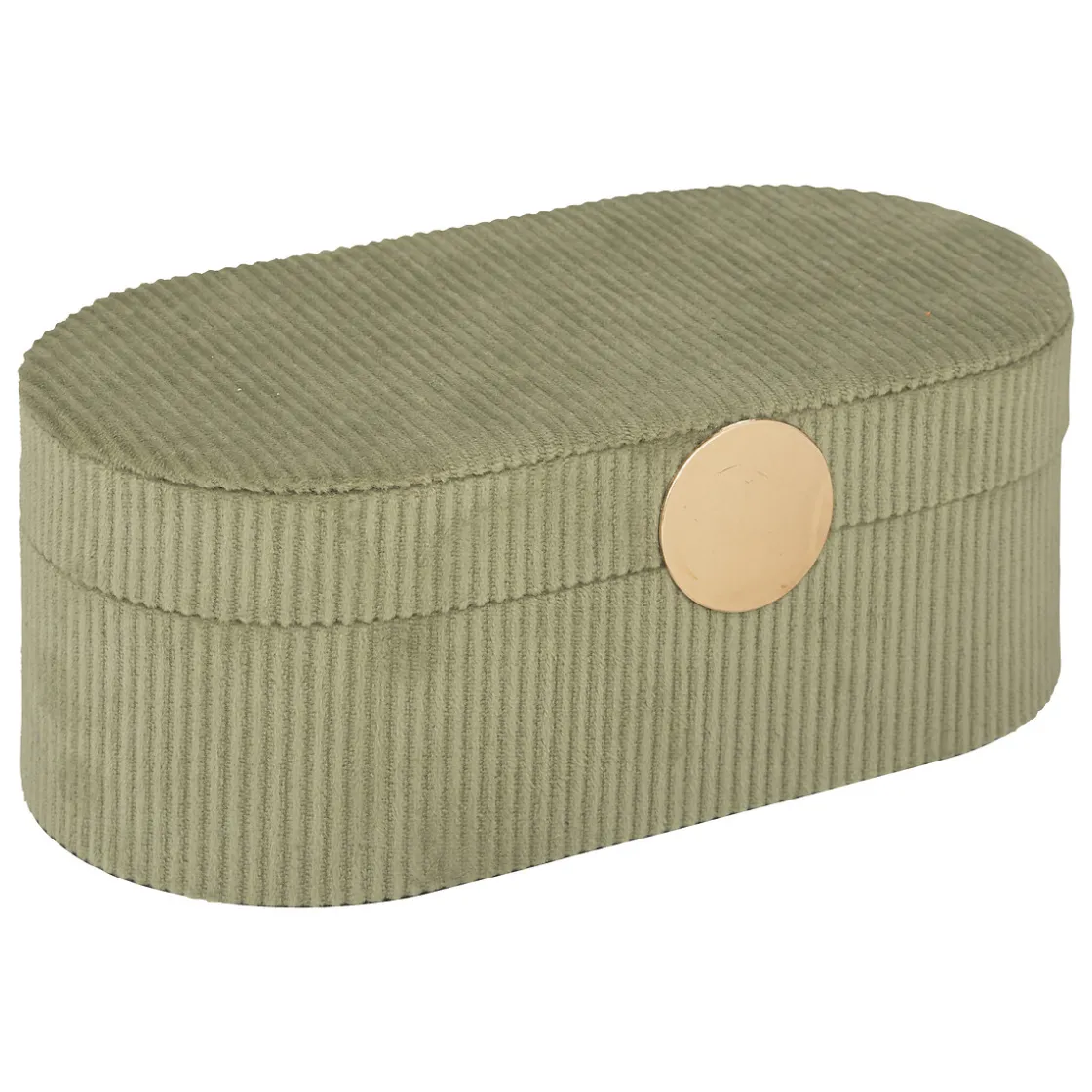 Ce coffret ovale se distingue par son revêtement en tissu texturé et la serrure en métal brillant. Vous pourrez y ranger vos bagues, colliers, bracelets et boucles d’oreille. Ainsi, vos affaires seront à l’abri de la poussière. Le couvercle de la boîte à bijoux « Enya » dispose d’un miroir pour vous apprêter facilement.