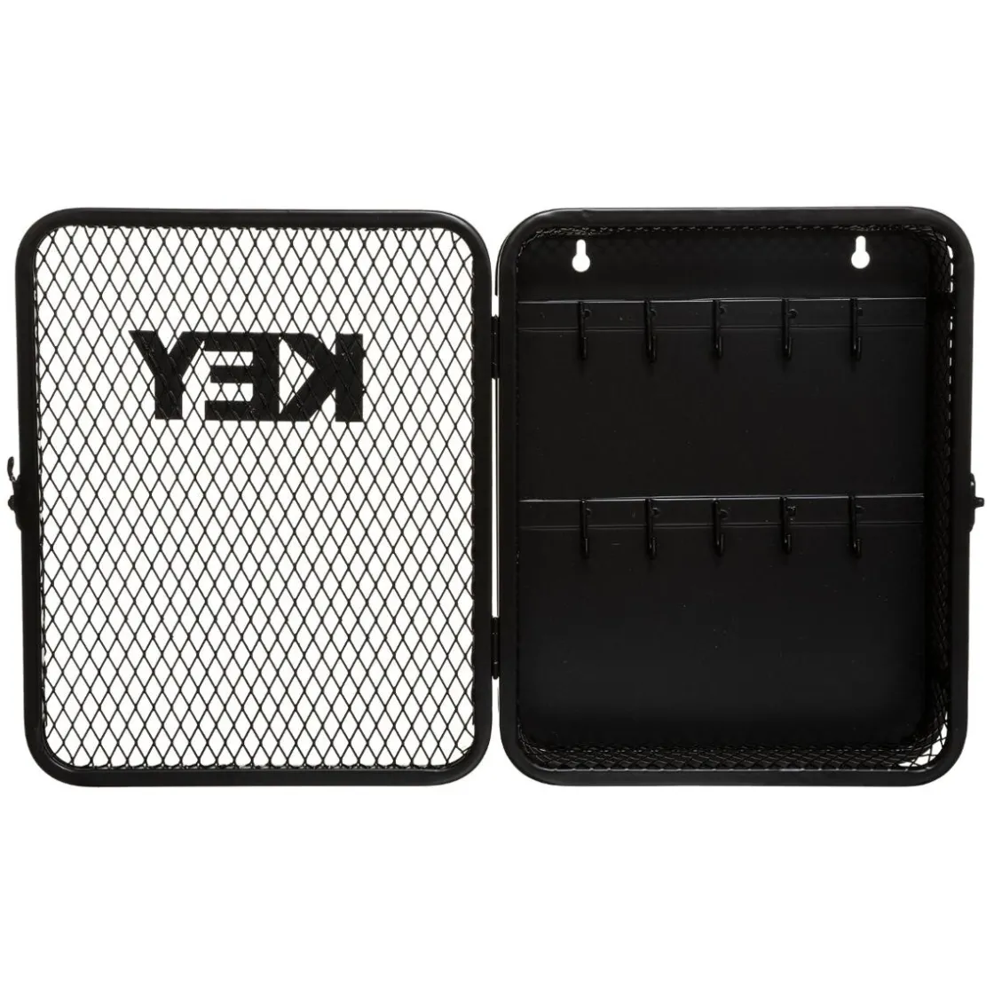 Fixée au mur par 2 vis, cette boîte à clés grillagée en façade s’orne du mot Keys et se ferme au moyen d’un crochet métallique. Vous pourrez y accrocher jusqu’à 10 trousseaux visibles de l’extérieur.