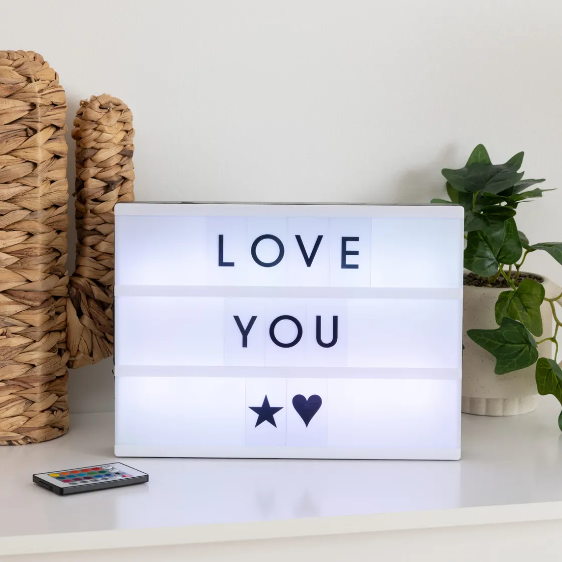 Déclinée dans deux coloris de structure, cette boîte lumineuse dispose de 82 lettres et symboles pour rédiger les messages de votre choix, au gré de vos humeurs ! Ce luminaire fonctionne avec des piles et dispose d’un interrupteur. Grâce à la télécommande, vous pouvez modifier la couleur de l’éclairage.