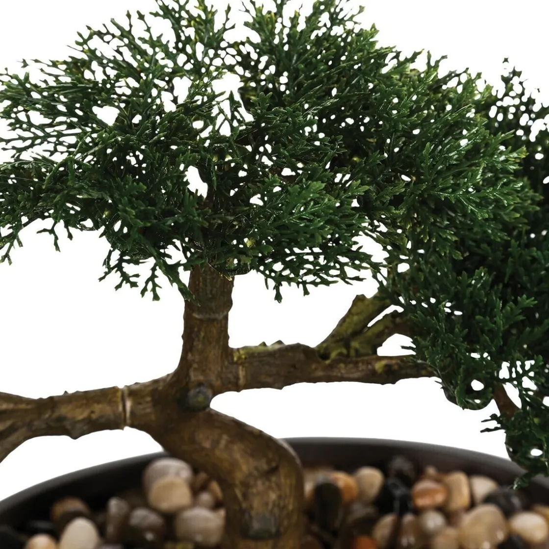 Très réaliste, ce bonsaï artificiel ne nécessitera pas d’entretien particulier, si ce n’est un coup de chiffon pour ôter la poussière de son feuillage. Planté dans un superbe pot en céramique au fini mat, il mesure 23 cm et trouvera sa place sur un meuble comme sur une étagère. Les pierres naturelles ornant son pied apportent un supplément de caractère.
