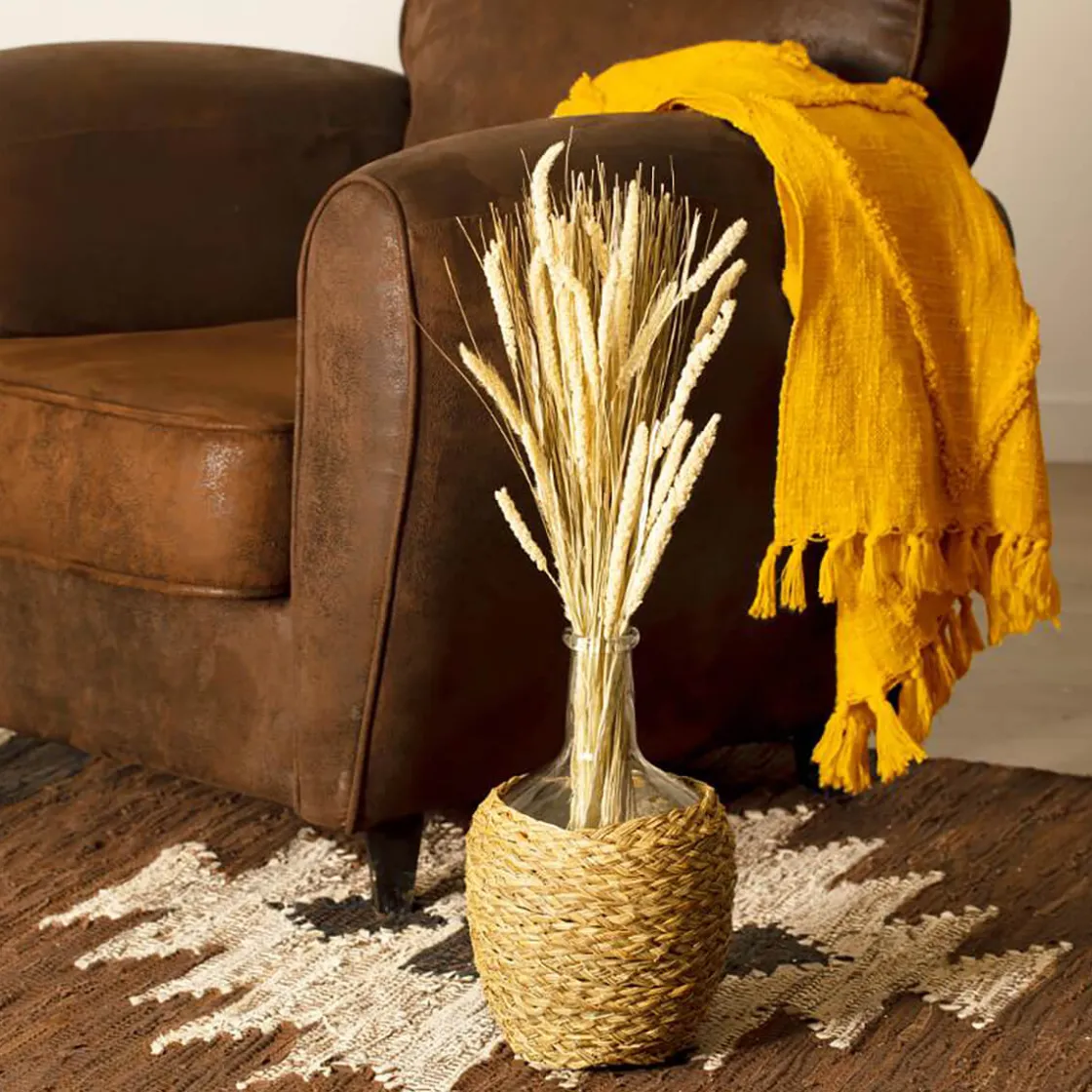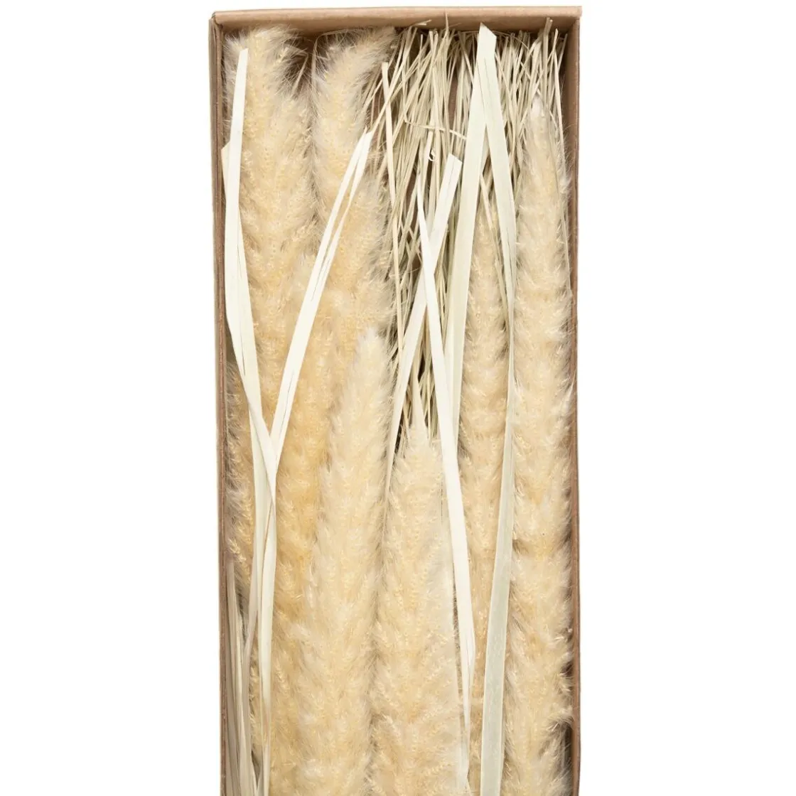 Ce bouquet regroupe une variété d’herbes, épis ou fleurs des champs séchés. Les brins forment une belle composition et participent à la création d’un univers poétique et délicat dans la pièce.