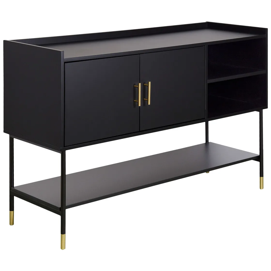 Idéal pour ranger de la vaisselle, ce buffet vous permettra également d’exposer des objets et accessoires déco. Le plateau supérieur offre un bord raffiné et le plateau inférieur accueillera des plantes artificielles ou des paniers au look sophistiqué.