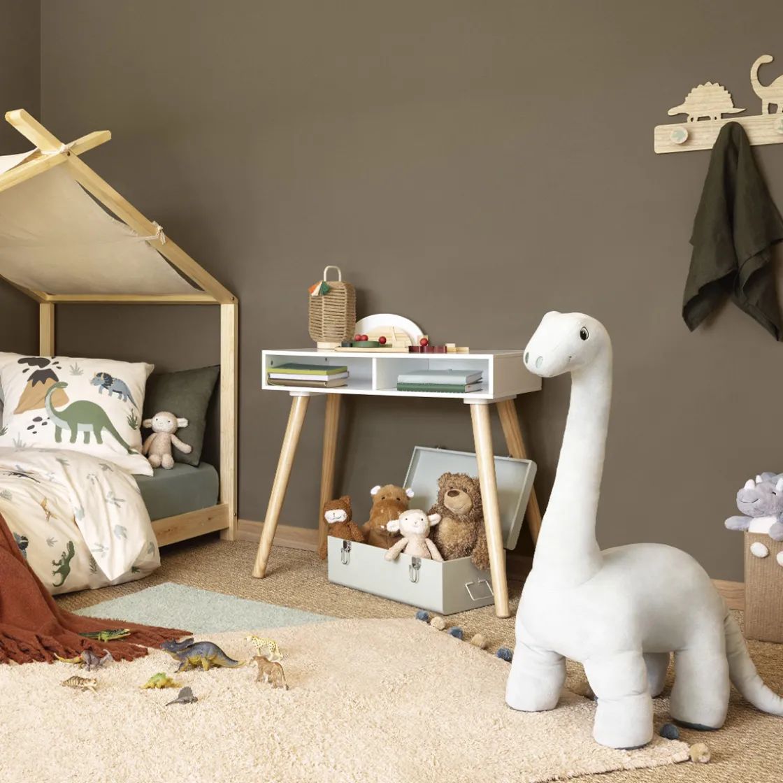 Ce bureau épuré se mariera naturellement avec du mobilier en bois clair et vous pourrez l’associer à un tapis en jute végétale pour créer une ambiance chaleureuse dans votre chambre d’enfant.