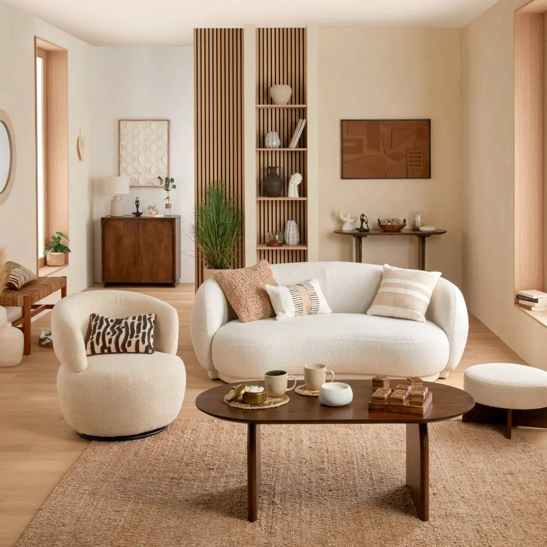 De plus, le tissu certifié Oeko-Tex® est très agréable au toucher. Une table basse et un meuble Tv Atmosphera compléteront joliment votre canapé fixe Nesky.