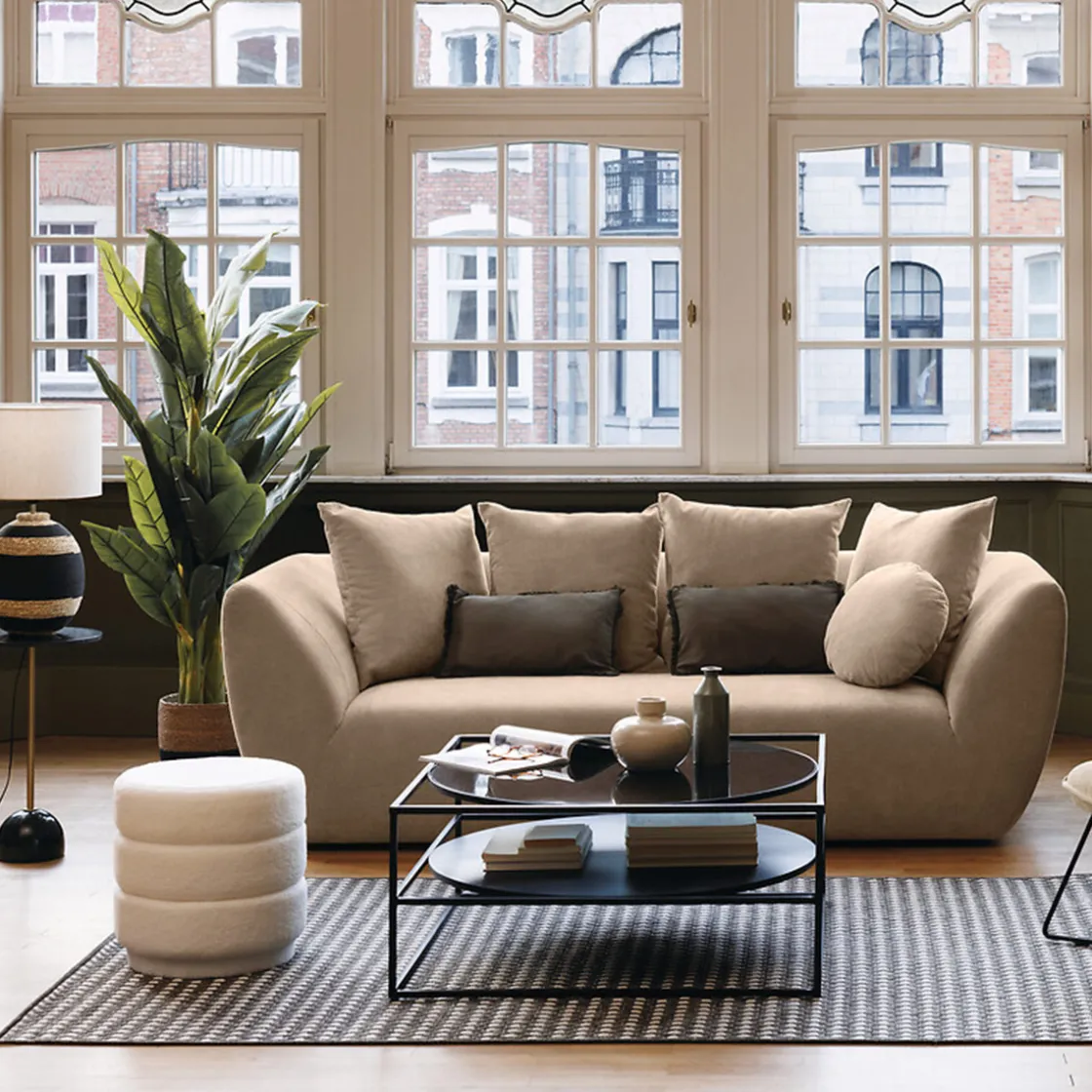 Pour une touche glamour au salon, ajoutez une large suspension en métal filaire Atmosphera au-dessus de votre canapé.