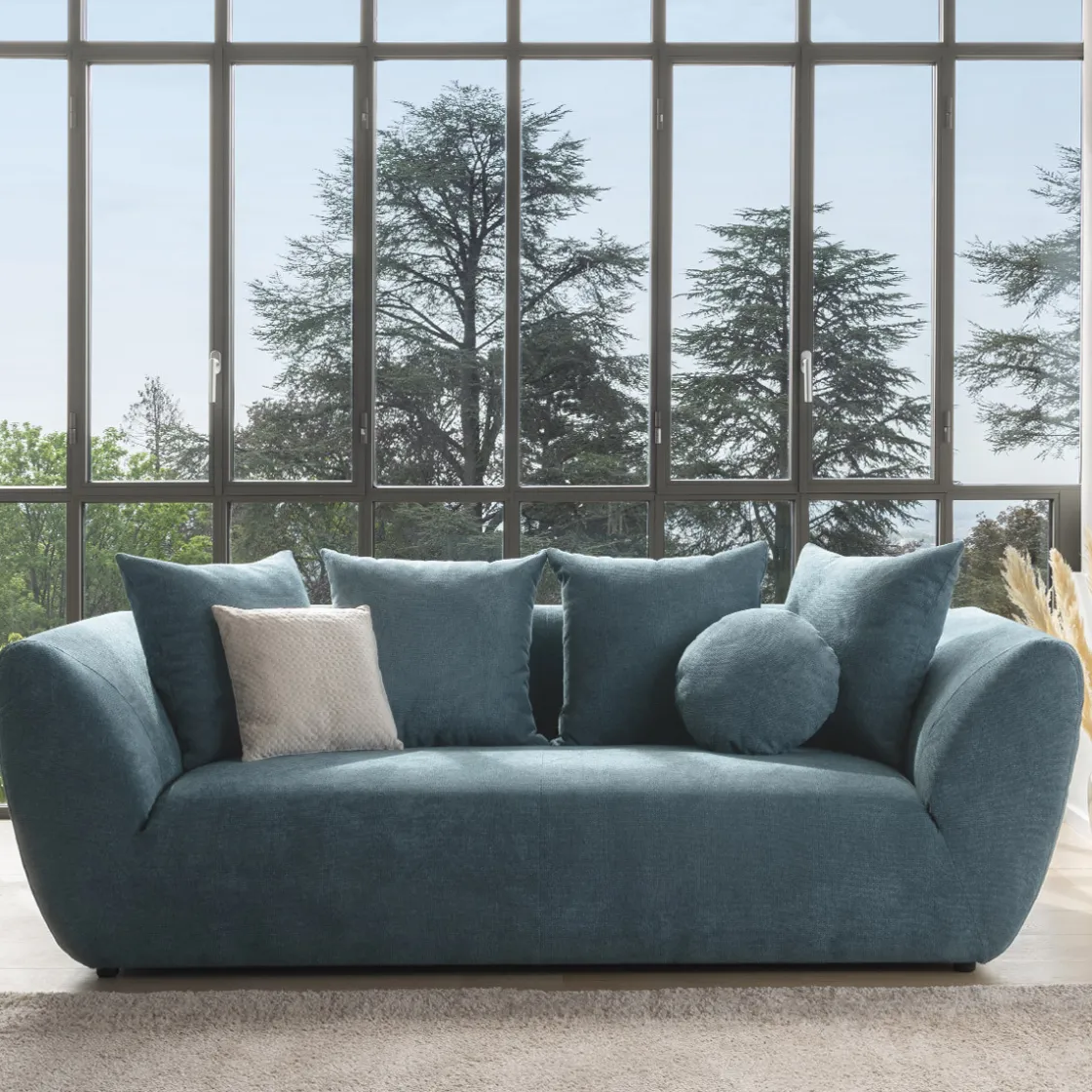 Le corps massif du canapé « Floyd » 3 places en fera tout de suite la pièce maîtresse de votre séjour. Sa couleur profonde s’inscrira à merveille dans un décor raffiné et chaleureux. Véritable cocon de douceur, vous allez adorer vous y relaxer pendant de longues heures.