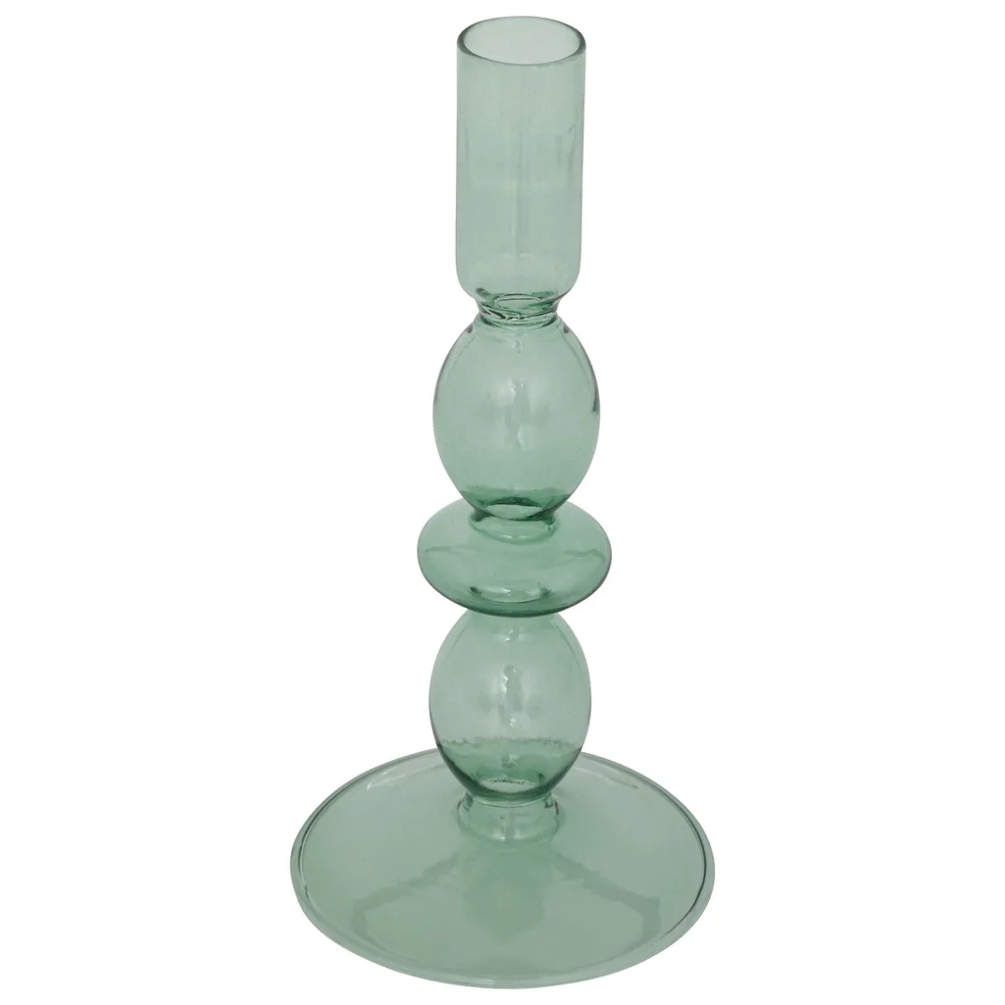 Très glamour, ce chandelier est en verre transparent teinté avec un pied bien travaillé. Sa hauteur moyenne est conçue pour accueillir des bougies bâtons à la cire traditionnelle ou LED. On l’imagine parfaitement sur une console dans une entrée ou sur un buffet dans un salon.