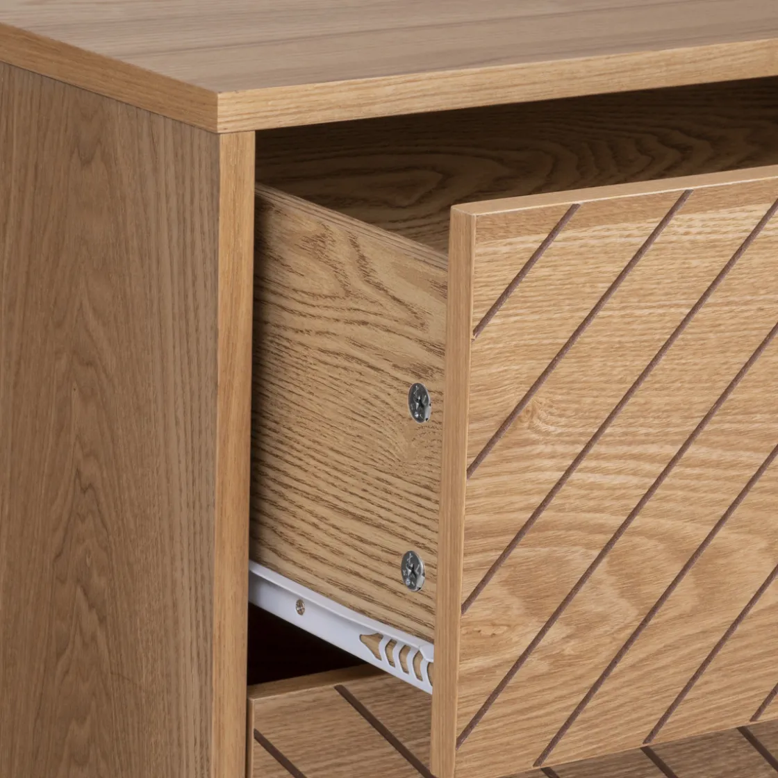 Pour meubler un coin de chambre ou de salle de bain, rien de tel que le chiffonnier « Naomi ». Il est en fibres de bois avec un placage en frêne et possède des pieds graphiques en métal. Ses lignes esthétiques s’adapteront très bien à un décor contemporain.