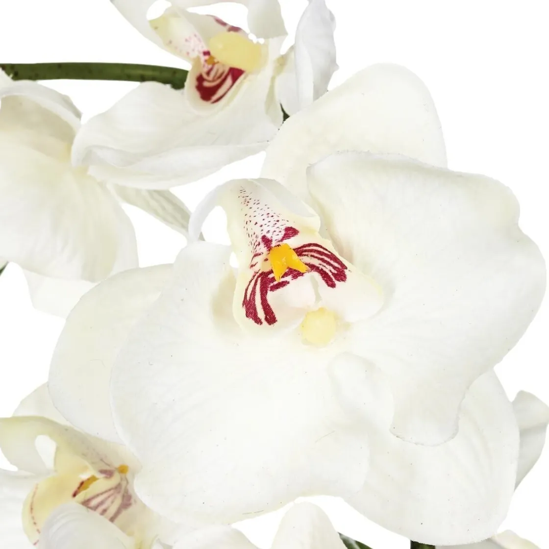 Présentée dans une jolie coupelle en céramique, cette orchidée artificielle égayera votre intérieur. Elle se distingue par son apparence réaliste grâce à ses pétales délicats et ses grandes tiges. De la mousse et une boule décorative à la base apportent la touche finale à l’ensemble.