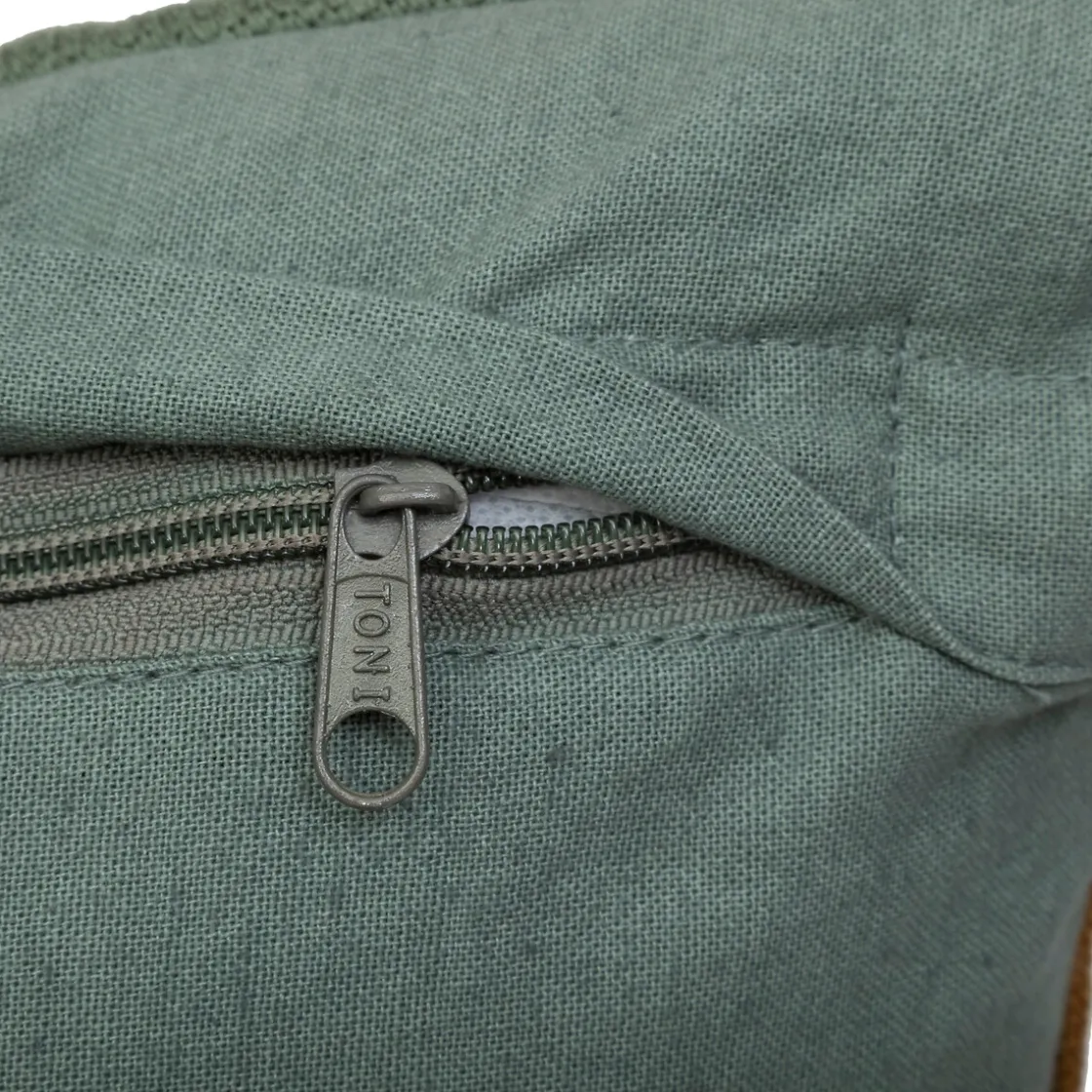 La housse en coton est amovible à l’aide d’une fermeture éclair pour faciliter le nettoyage.