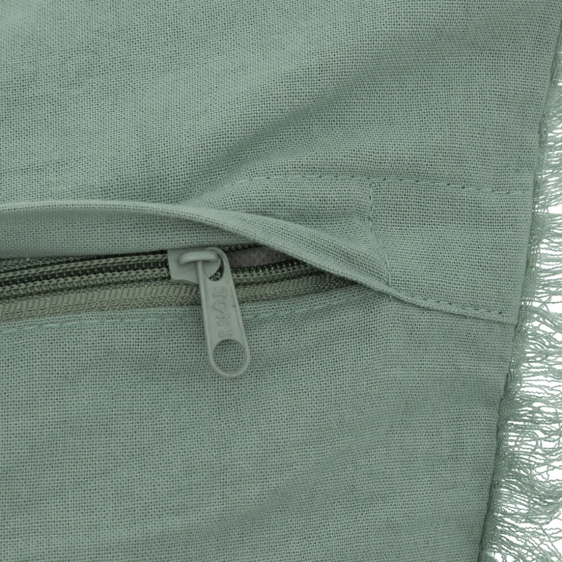 Ce coussin carré arbore un joli tissu en relief avec de petites franges. Avec sa couleur Vert céladon, vous pourrez facilement l’intégrer dans un séjour ou une chambre à coucher. Cet accessoire est également déhoussable pour un entretien sans effort en machine.