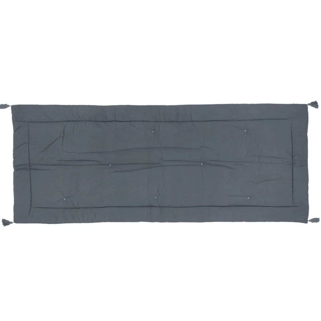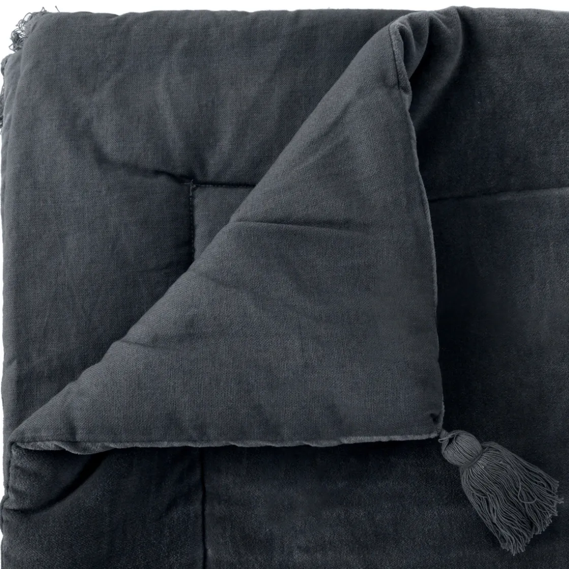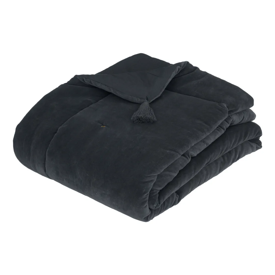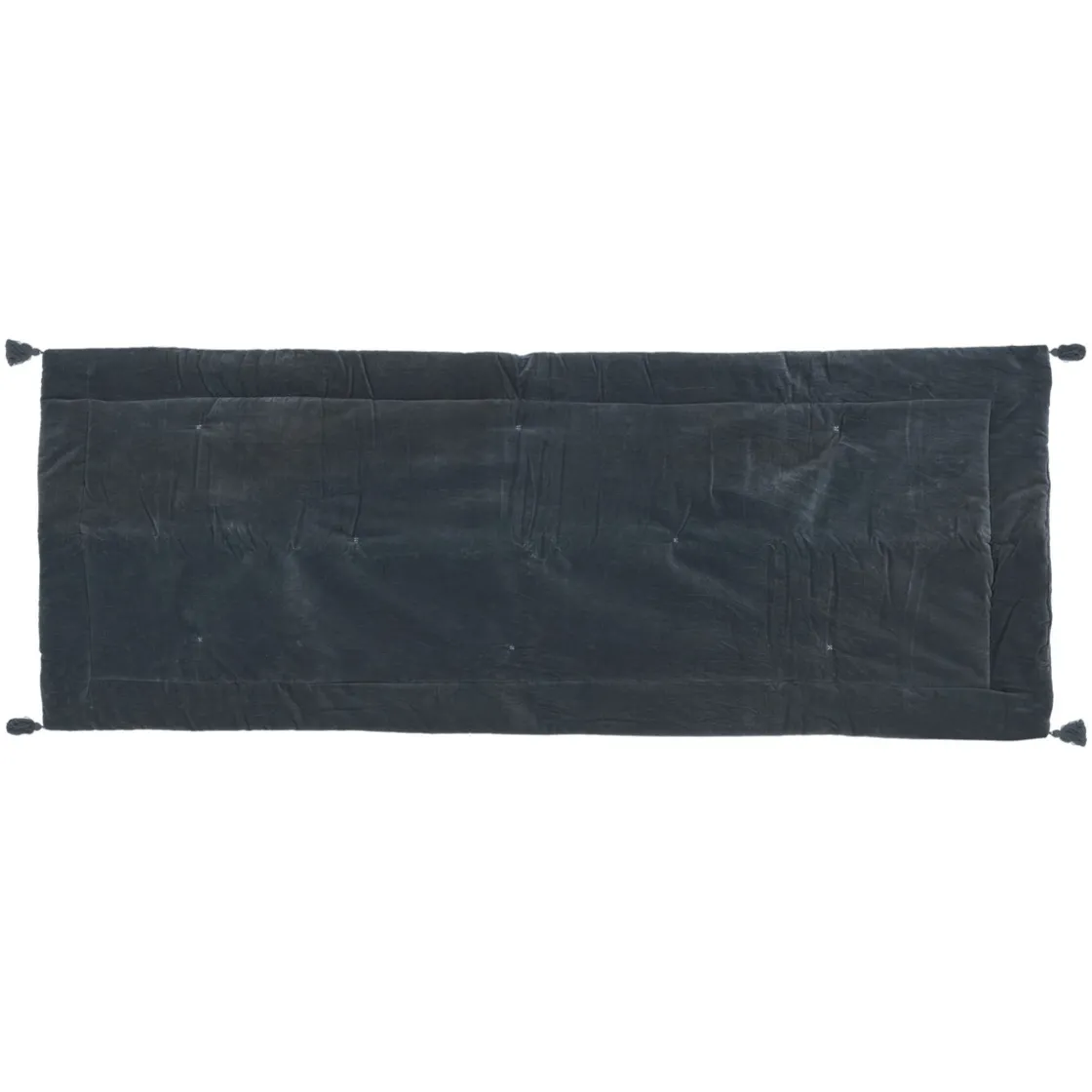 Réalisé en velours de coton sur une face et en tissage de coton sur l’autre, cet édredon « Night » sera parfait en bout de lit pour sublimer une parure. Brodé de pompons dans les coins et surpiqué sur les bords, c’est un accessoire déco élégant et confortable.
