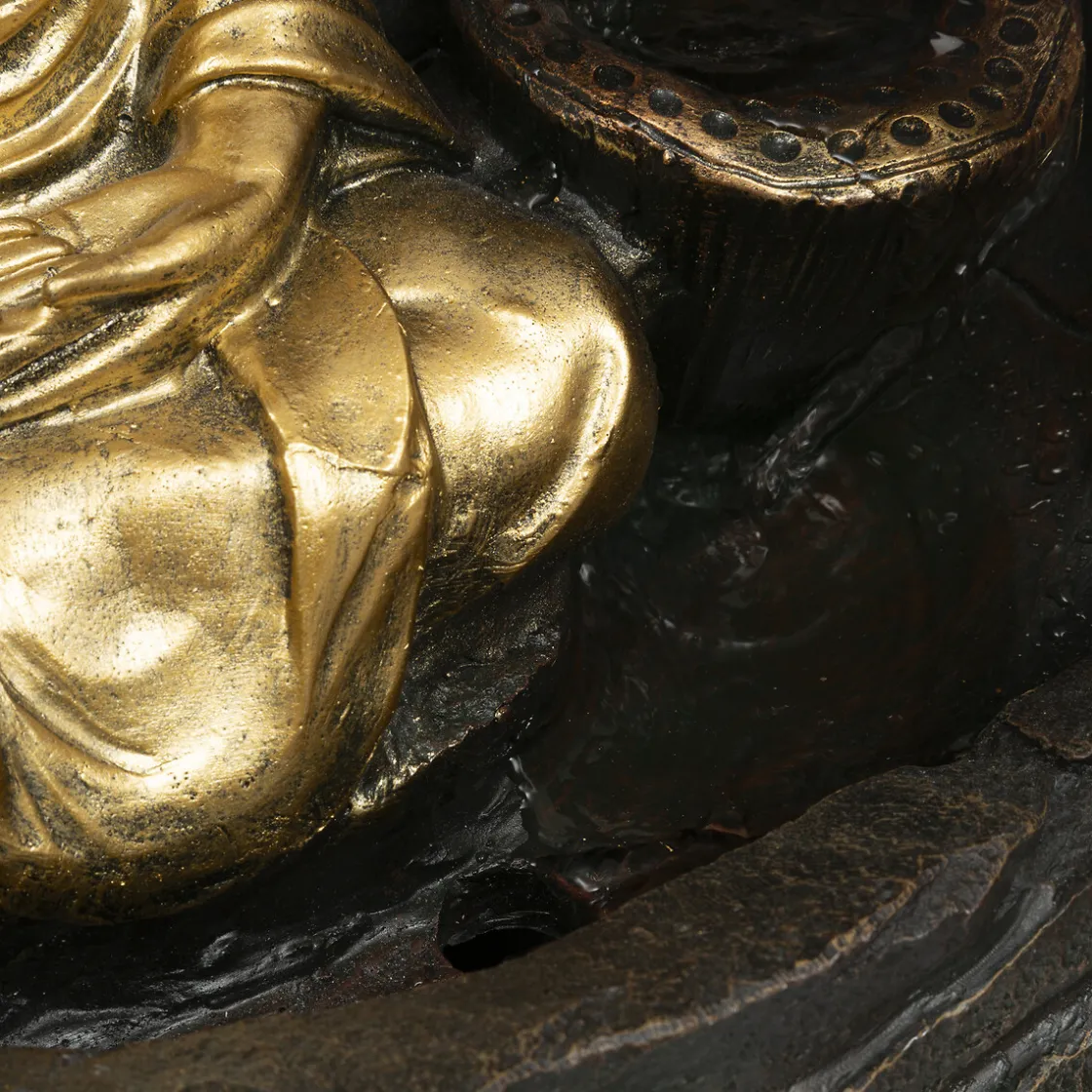 Faite en résine, la fontaine « Kalyani » est résistante pour vous accompagner de longues années. Le bouddha assis d’une couleur brillante lui apporte une jolie touche de préciosité. Cet objet déco semble venir tout droit d’Asie et s’inscrira à merveille dans un intérieur qui invite au voyage.