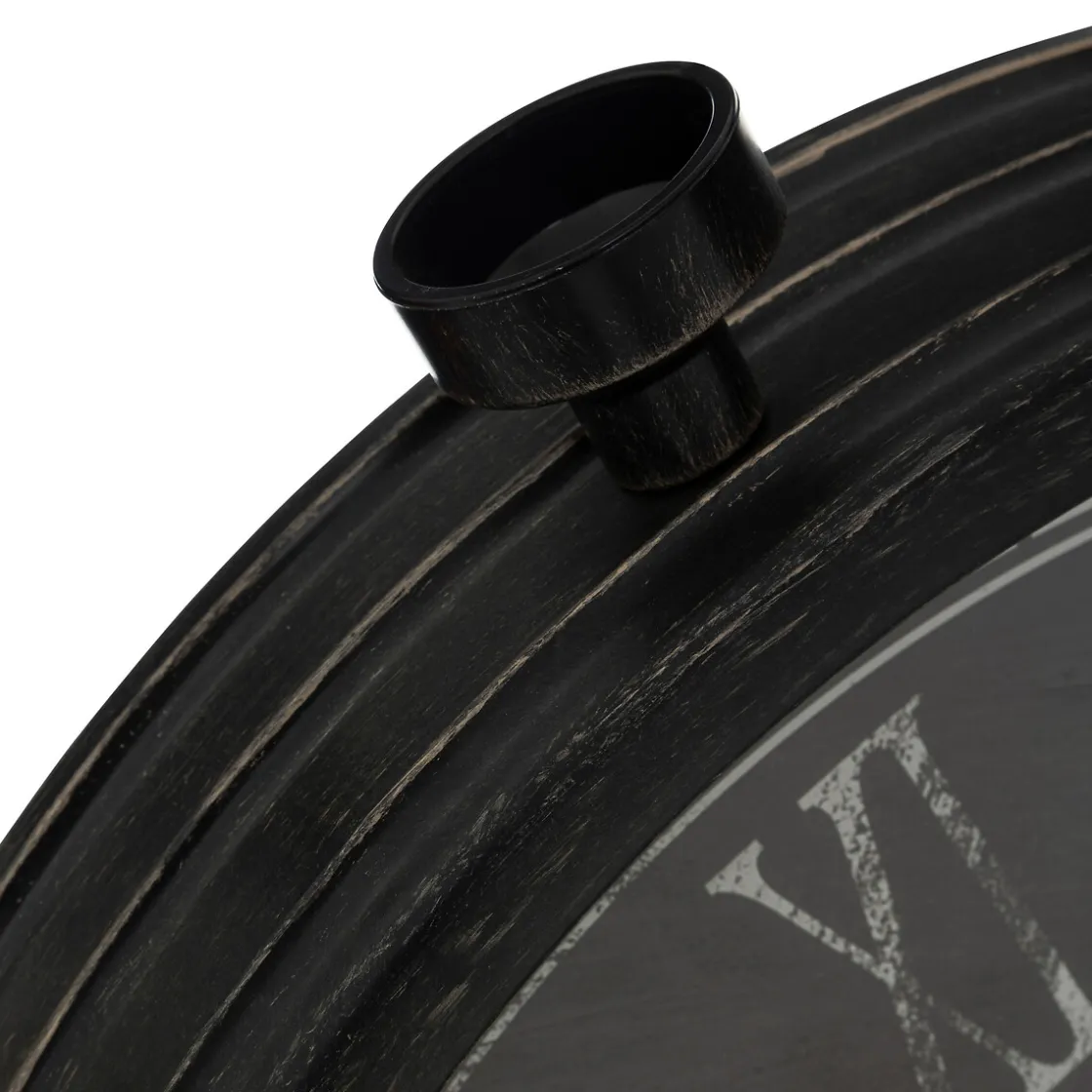 Très simple à suspendre, cette horloge dont le cadre offre un fini vieilli se mariera parfaitement avec du mobilier en bois et des matières naturelles comme le lin et la jute végétale.