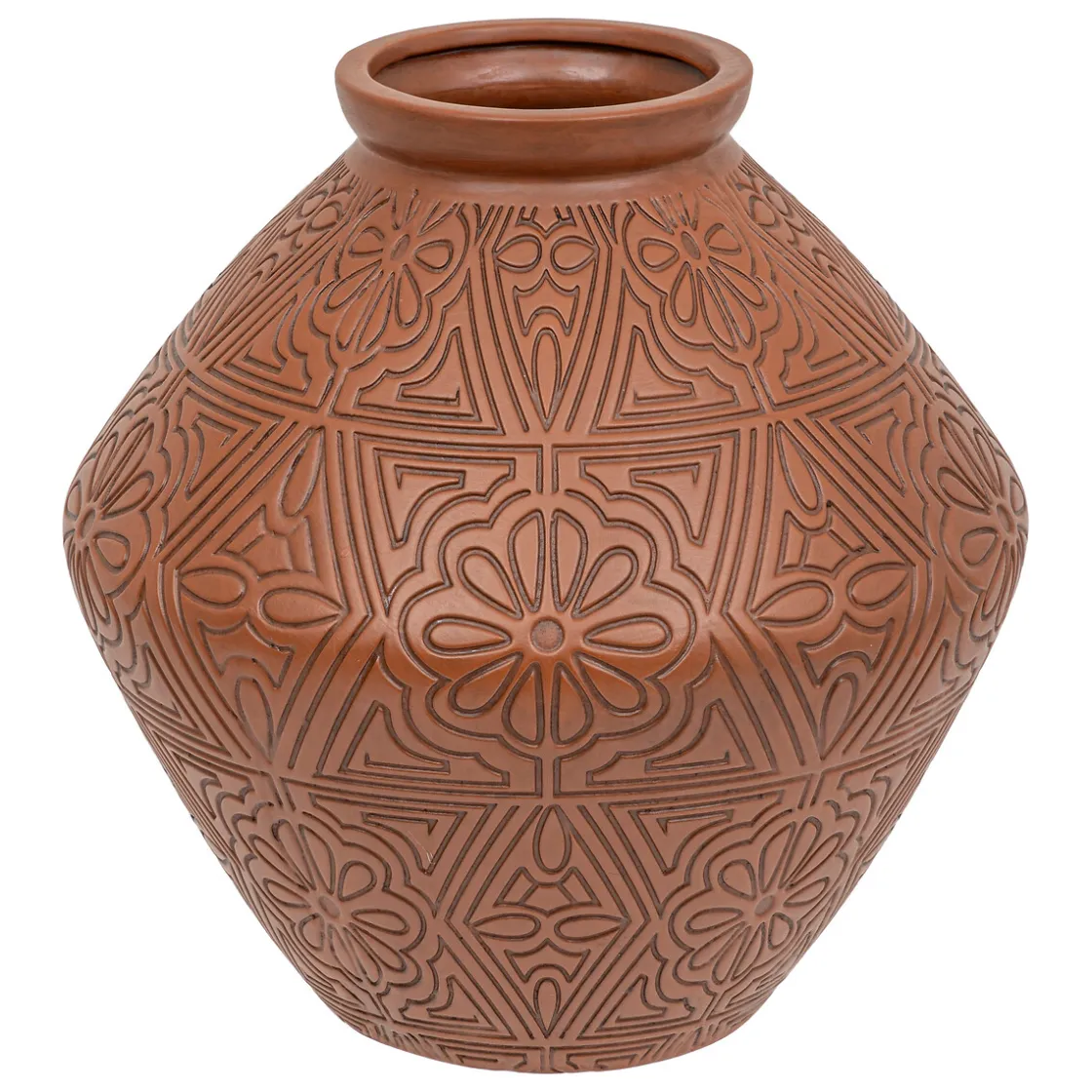 Réalisée en terre cuite et sculptée de motifs d’inspiration exotique, la jarre « Exotic panama » obéit à un format harmonieux. Étanche, elle vous permettra de composer des bouquets de fleurs et tiges, naturelles ou artificielles.