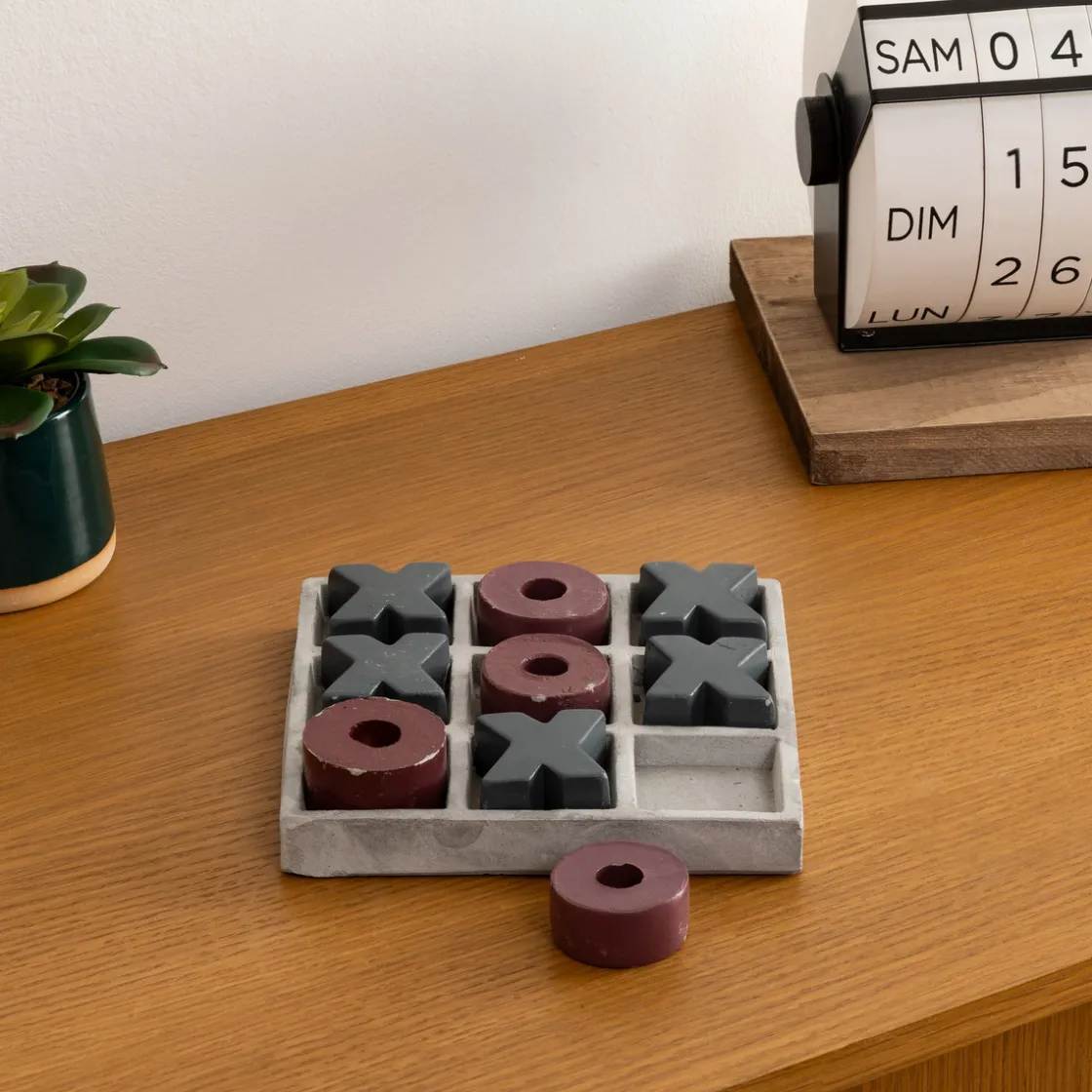 Réalisé en ciment, ce magnifique jeu morpion « French » constitue un objet déco à part entière et apportera beaucoup de cachet à votre intérieur. Avec ses dimensions carrées de 15 x 15 cm, vous pourrez le poser aussi bien sur un buffet que sur une table basse pour une touche authentique.