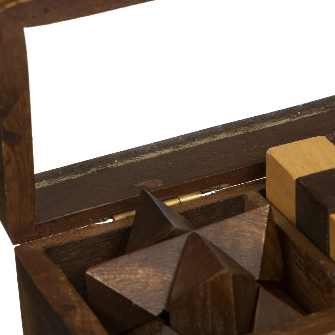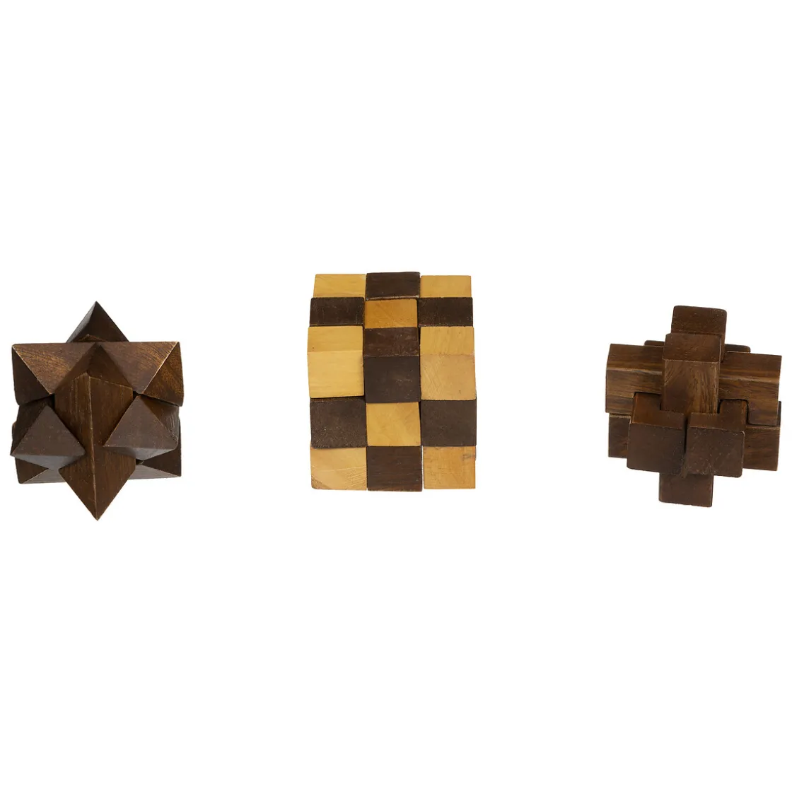 Ces trois casse-têtes différents sont présentés dans une élégante boîte en bois de manguier. Divisée en trois compartiments, elle possède une vitre en verre sur le dessus et un loquet en laiton. L’allure authentique de cet objet déco sublimera un intérieur aux accents vintage.