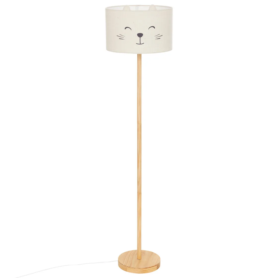 Ce lampadaire possède un pied en bois qui soutient un abat-jour cylindrique en forme de tête de chat. Votre enfant craquera pour ses petites oreilles, ses moustaches et son visage avenant.