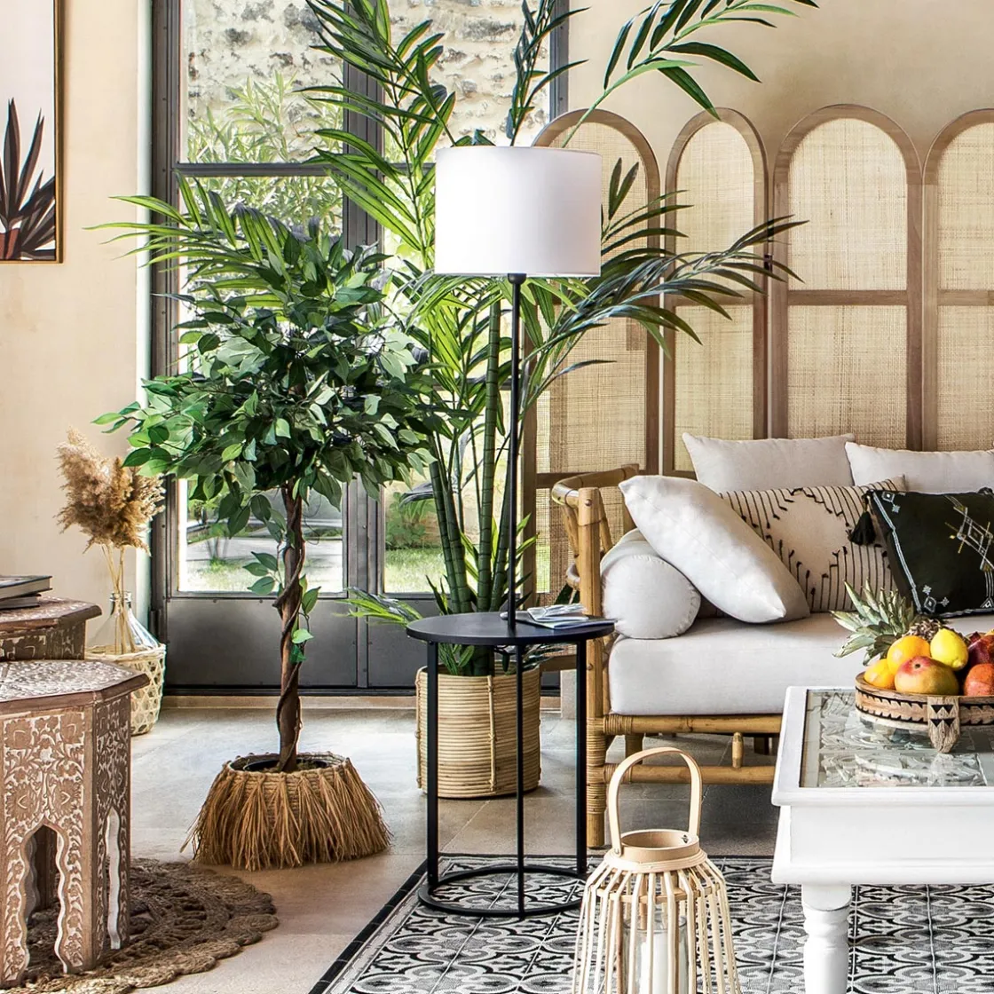 Bel exemple de meuble multifonction, ce lampadaire à tablette intégrée apportera une touche d’originalité à votre salon. Terminé par un grand abat-jour favorisant la diffusion de la lumière, le pied du lampadaire « Gil » est fixé au centre d’une table ronde soutenue par un piètement circulaire.