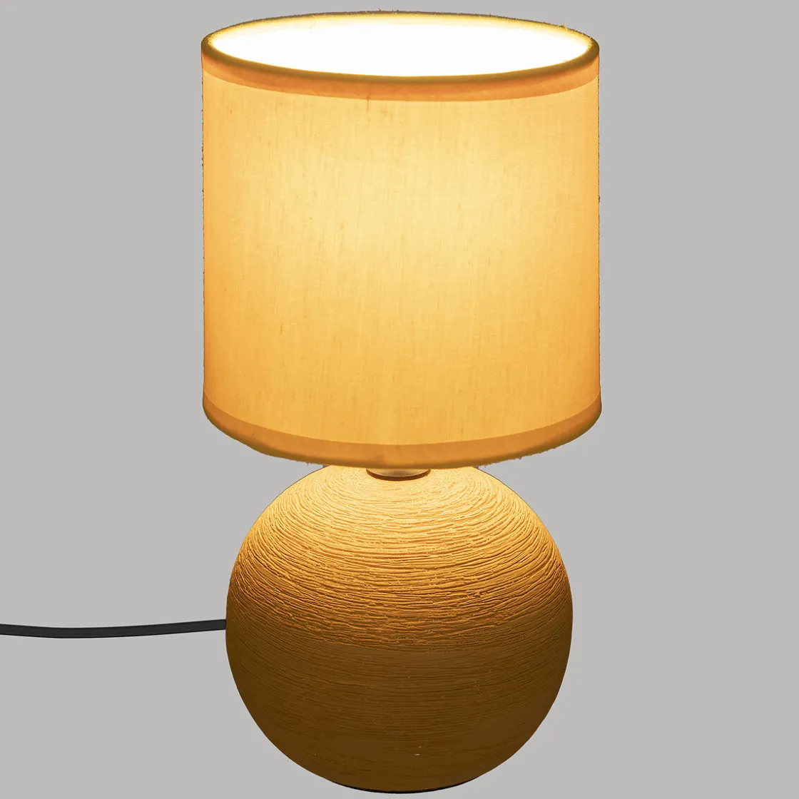 La lampe boule « Timeo » a été conçue pour s’adapter à toutes les pièces de votre maison. Peu encombrante, elle trouvera facilement sa place sur une table de nuit, une commode ou encore un buffet. Vous profiterez alors d’un éclairage feutré grâce à son abat-jour en polyester qui tamise la lumière.