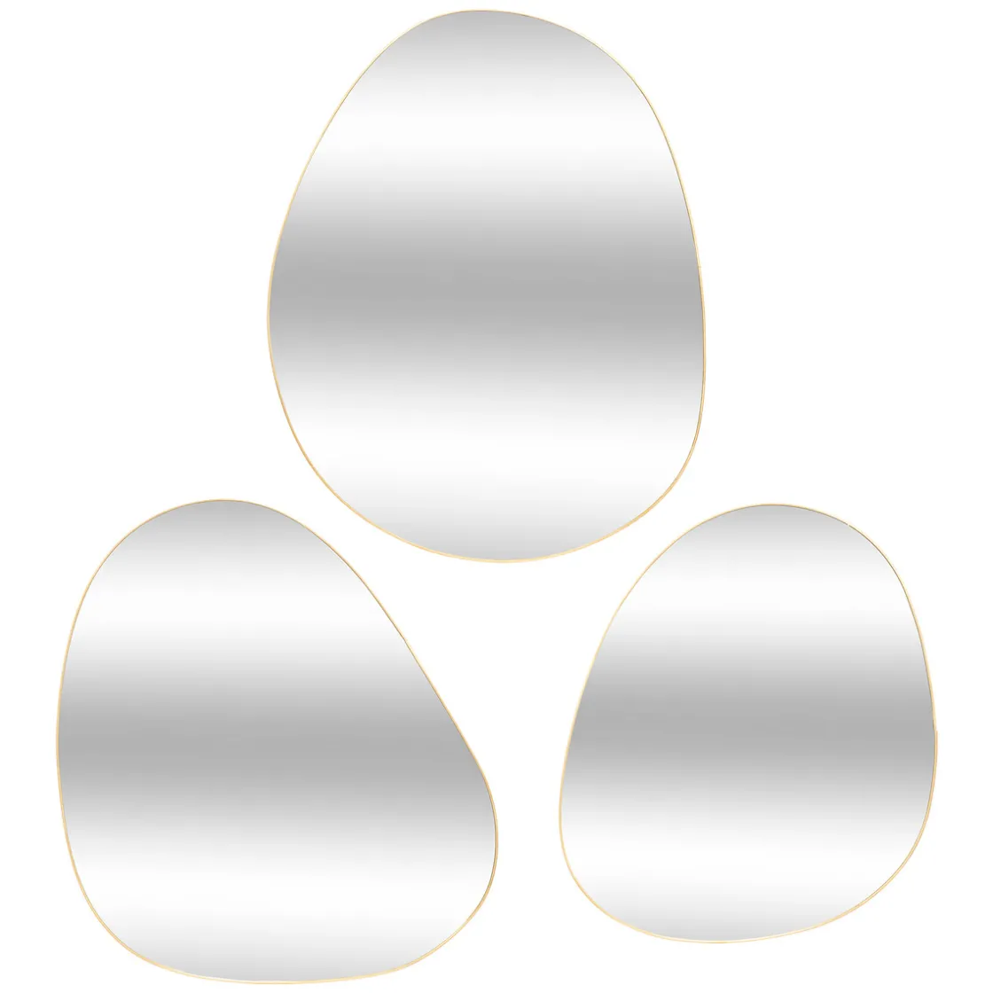 Le lot de miroirs organiques « Lida » est composé de 3 éléments aux courbes ovales et de formats différents, chacun étant doté d’un système de fixation. Indépendants les uns des autres, ils offrent des contours biseautés et cerclés de métal au fini laiton. Vous pourrez les suspendre en fonction de vos envies en les associant à du mobilier en bois foncé.