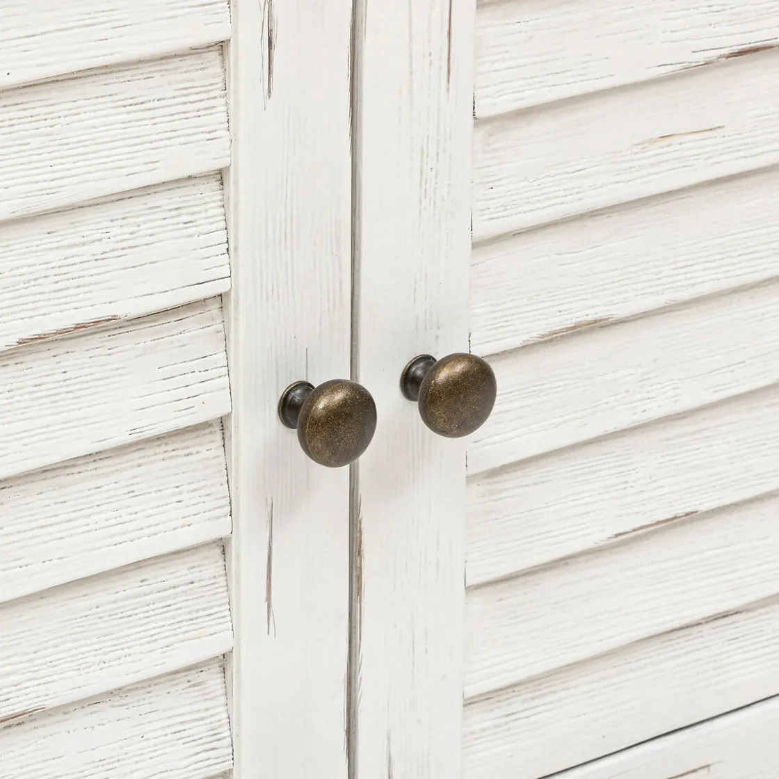 Très authentique, ce meuble TV se distingue par son plateau naturel associé aux portes de placard à lattes et aux poignées en métal qui ornent chaque élément. Le bois de la partie inférieure déposera une touche poétique et délicate dans votre déco!