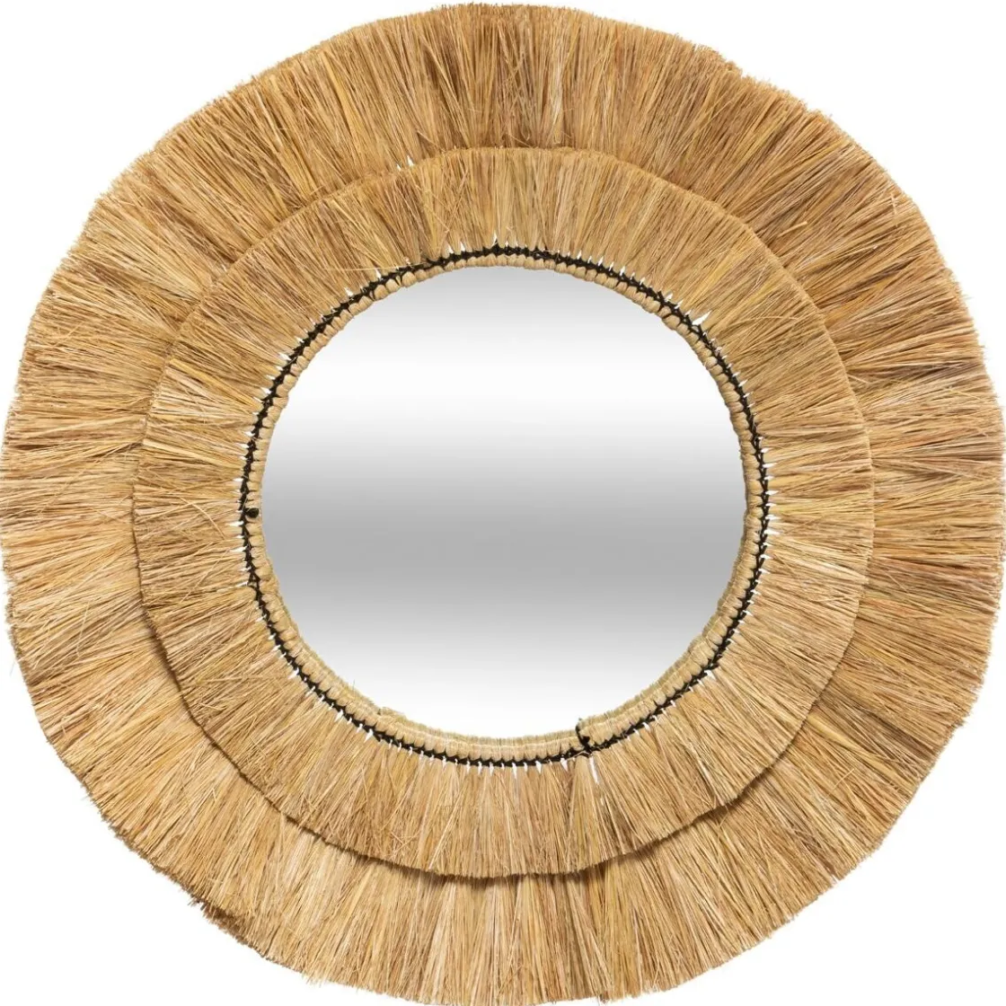 Ce miroir séduit par sa structure ronde agrémentée de milliers de brins de raphia. Avec son large diamètre, il offre les dimensions idéales pour jouer sur la profondeur de votre pièce.
