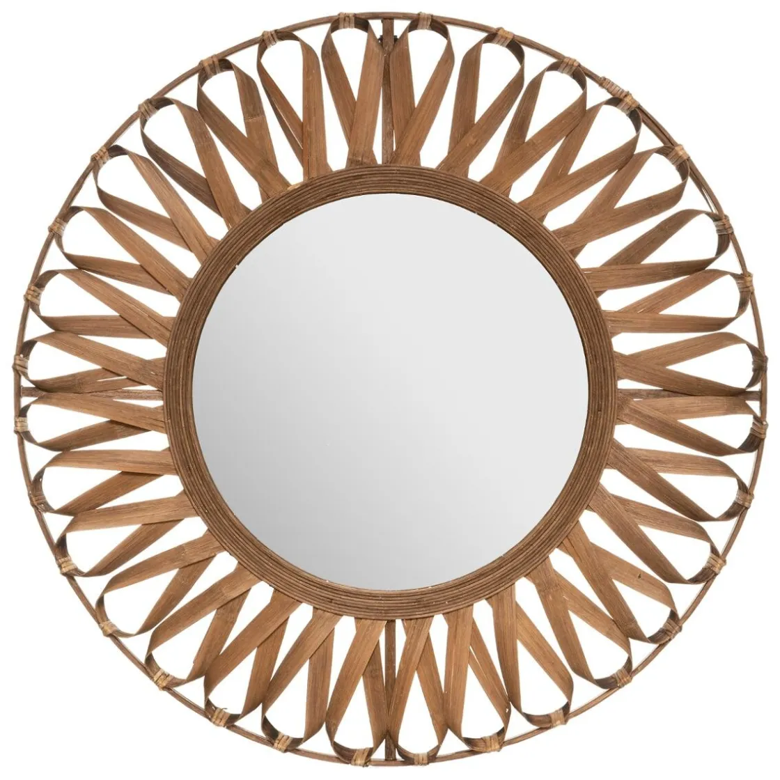 Le cadre du miroir « Eve » lui confère toute son originalité! De forme ronde, il est constitué d’un liseré tressé et d’une rosace en bambou naturel.