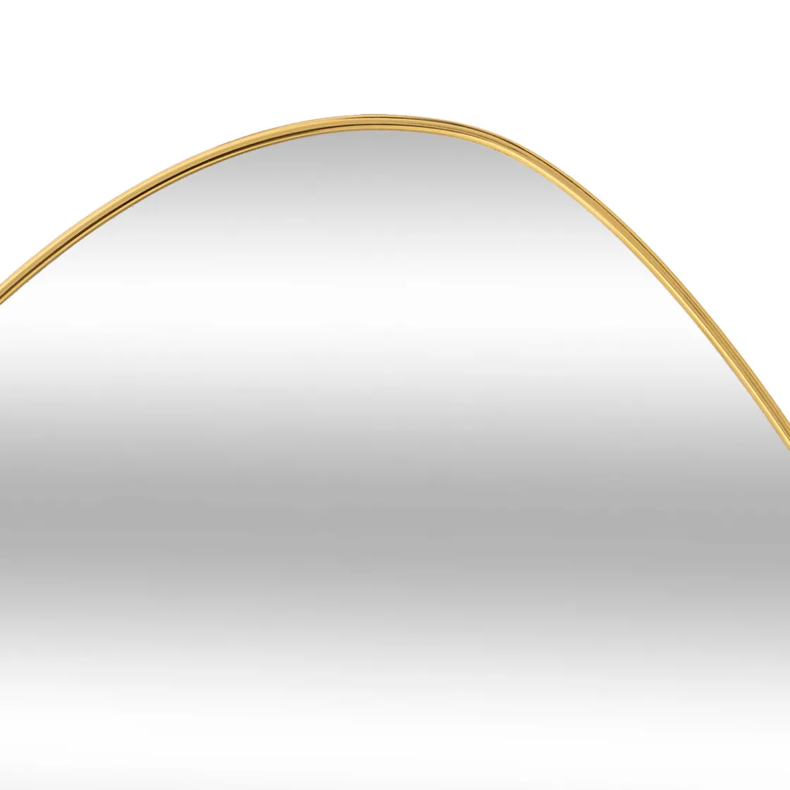 Miroir « Roman » Atmosphera. Sa forme organique très tendance associée à la couleur dorée de son cadre, plus intemporelle, font de ce miroir mural une pièce de décoration incontourable.