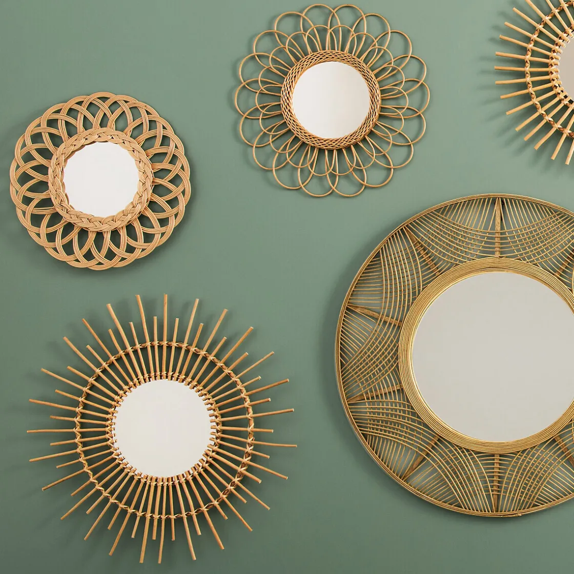 Des objets de décoration colorés mettront parfaitement en évidence ce miroir en rotin.