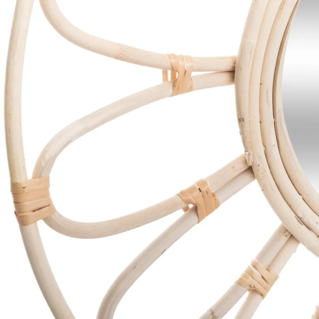 Ce miroir rotin fleur complètera tout en douceur l’ameublement d’une aux côtés d’un fauteuil en velours et cannage Atmosphera.