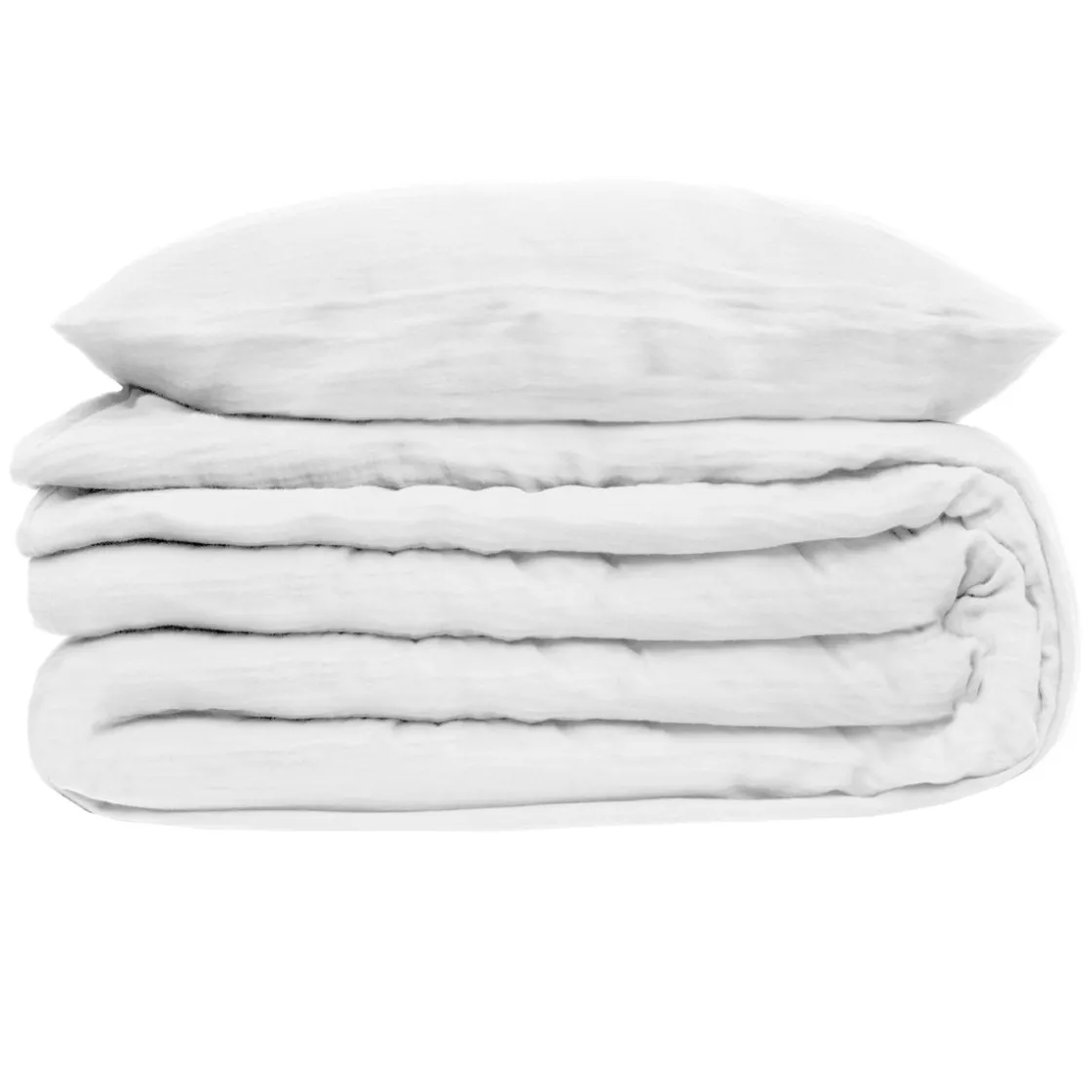 Cette parure en gaze de coton est unie et est composée de deux taies d’oreiller et d’une housse de couette. Facile à entretenir, elle est lavable en machine et se mariera avec tous les style d’intérieur.
