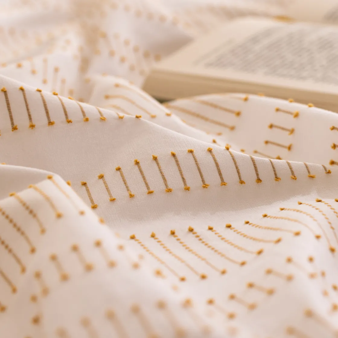 Faite pour un grand lit deux personnes, la parure de lit « Isao » dispose d’une housse de couette avec deux taies carrées. Elle est confectionnée en 100% coton pour vous garantir un rendu doux et robuste. Par ailleurs, le lavage en machine est possible jusqu’à 60°C.