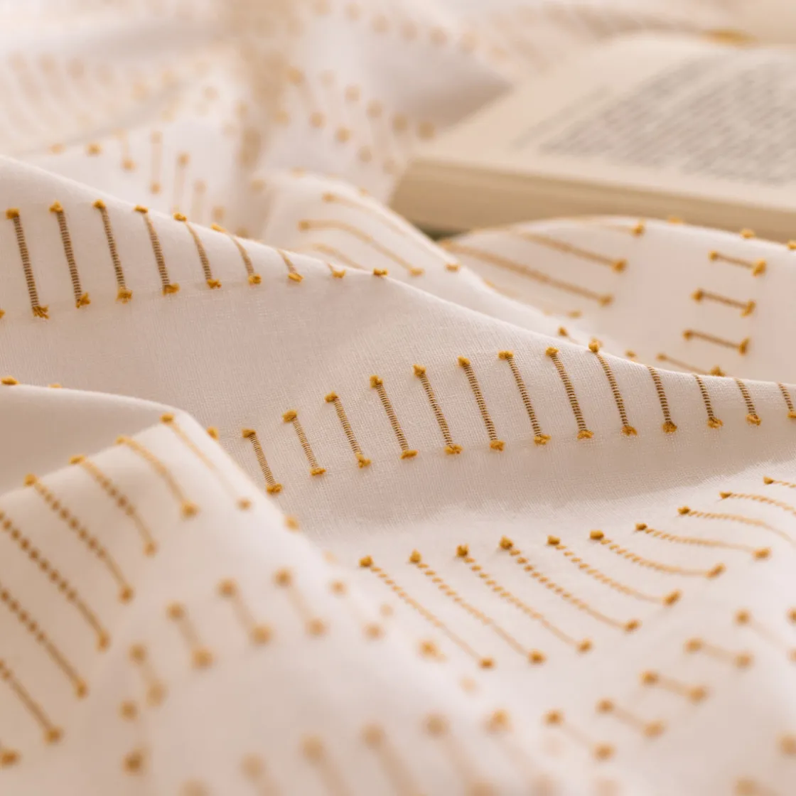 Conçu pour un lit deux personnes, cet ensemble comprend une housse de couette avec deux taies d’oreiller carrées. Les éléments sont confectionnés en coton pour vous permettre un nettoyage facile en machine.