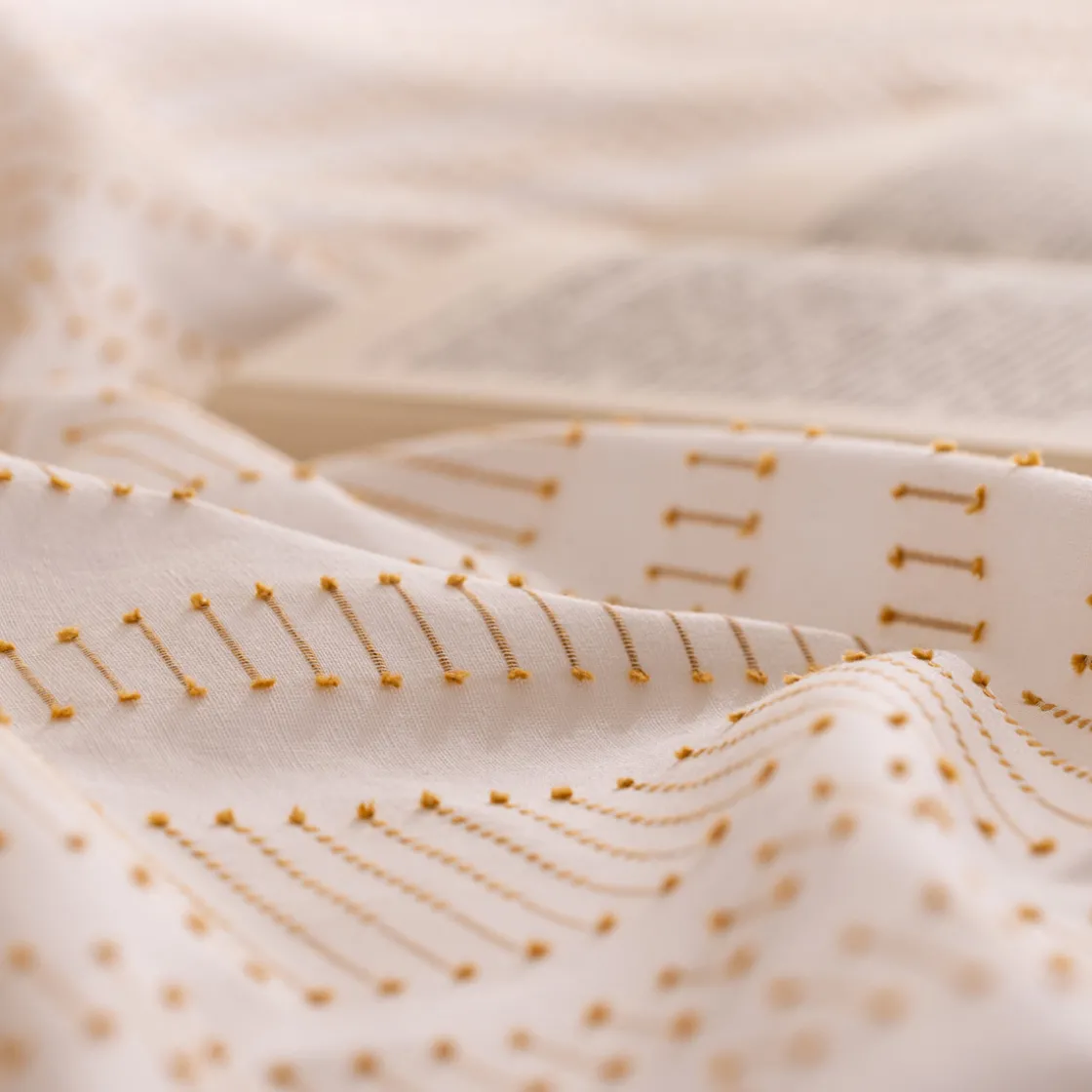 Les tons neutres de la parure de lit « Isao » créeront un joli relief avec des coussins colorés Atmosphera.