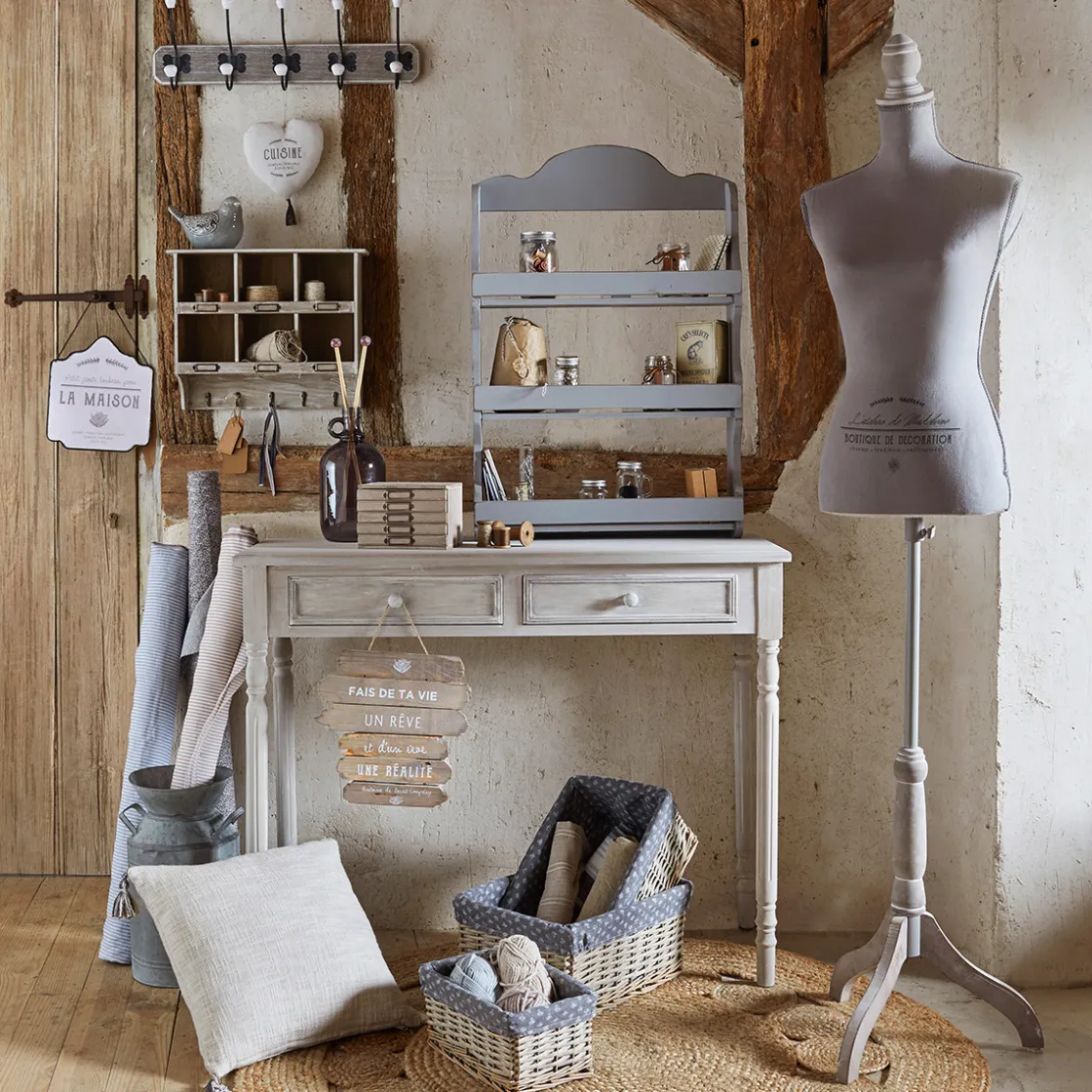 Fixés sur une planche à coins coupés, les crochets doubles en métal sont maintenus par des charnières ornementales papillon en acier vieilli. Ils sont finis de boules en céramique contrastée, douces avec vos chapeaux, écharpes et vêtements.