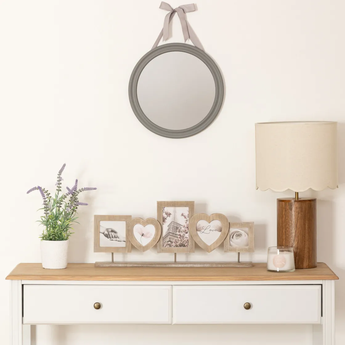 Installez votre pêle-mêle à poser « Charme » sur un buffet en bois Atmosphera afin de créer une unité de matières et profiter d’une déco conviviale!