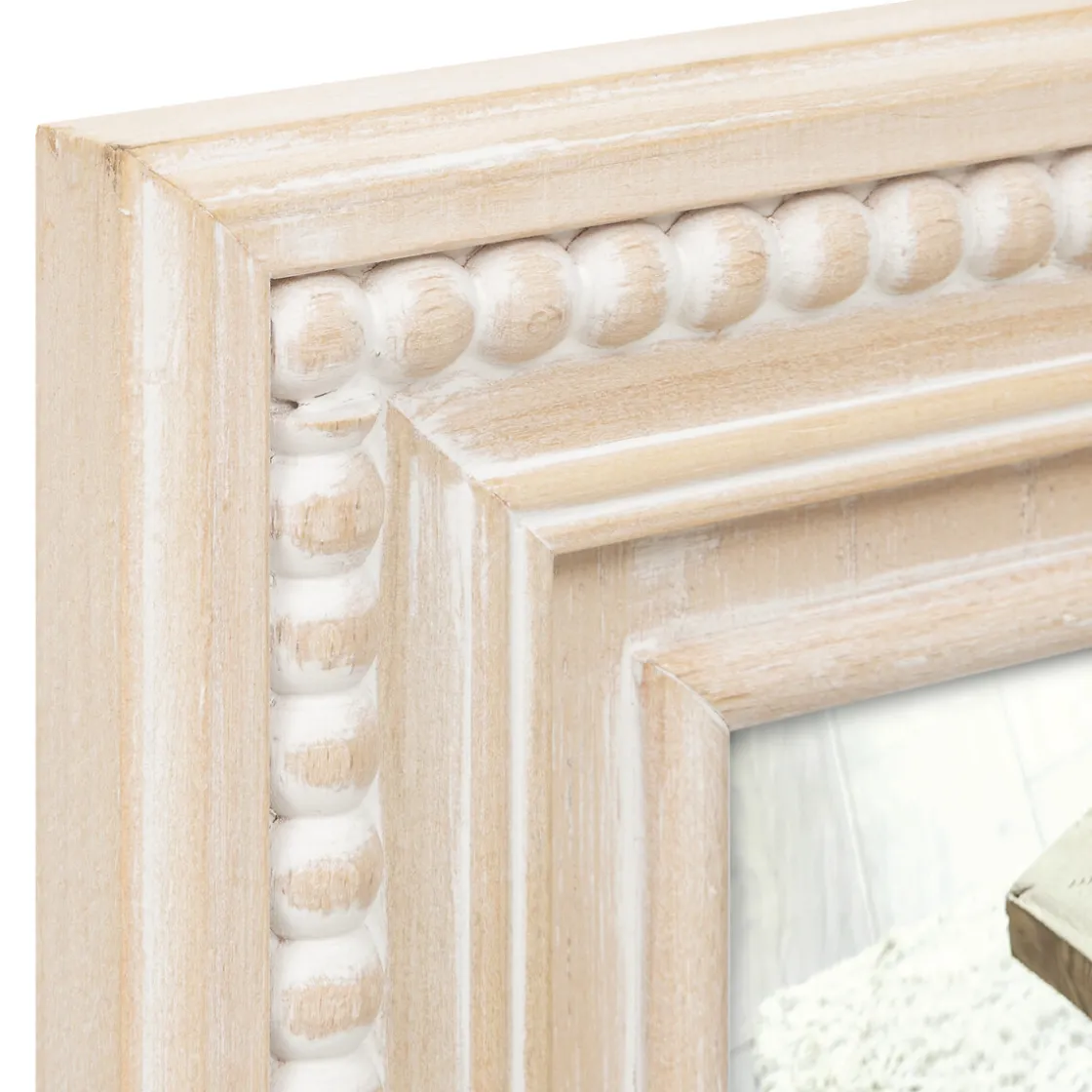 Très authentique, le pêle-mêle « Elena » est réalisé en bois de pin, le cadre travaillé offrant des moulures et reliefs délicats. L’intérieur comporte 8 cadres vitrés qui vous permettront de placer vos photos aux formats paysage et portrait. Romantique, il accueillera volontiers de photos en noir et blanc.