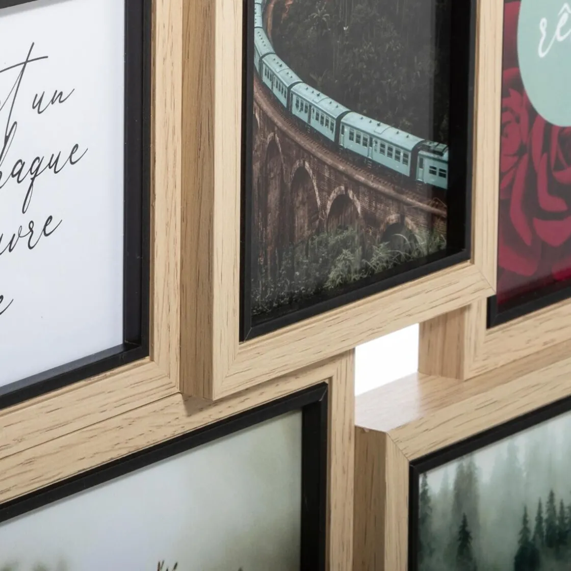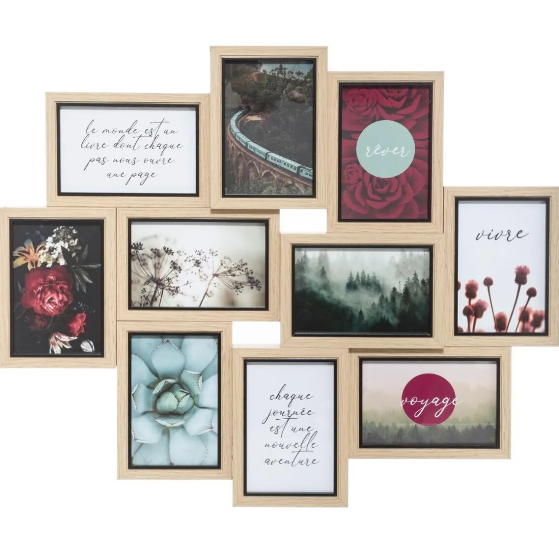 Pour une ambiance nature, accrochez ce pêle-mêle 10 photos « Kyle » au-dessus d’une console ou d’un buffet Atmosphera en bois clair.