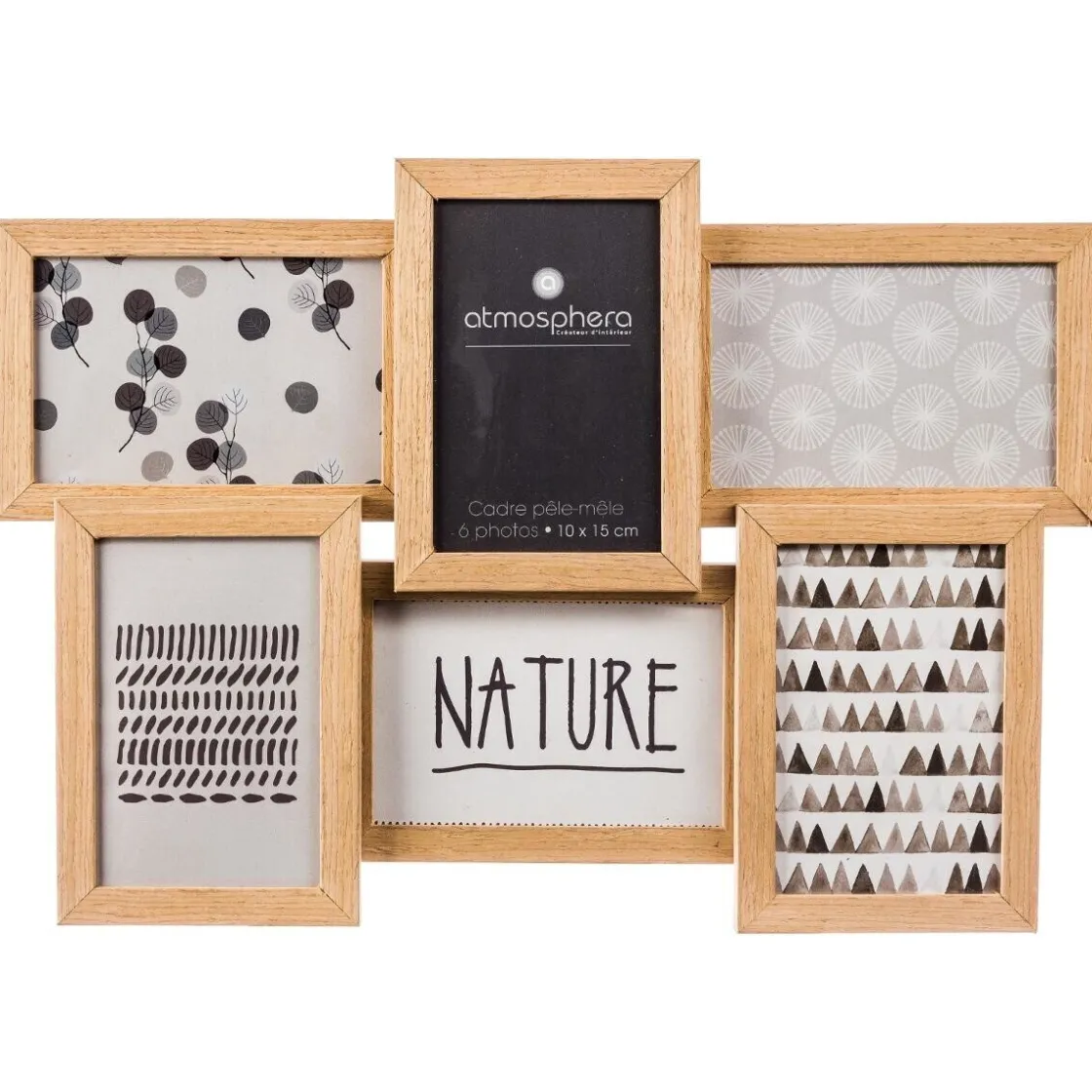 Composé de 6 cadres en bois savamment superposés les uns aux autres, ce pêle-mêle vous permettra d’exposer vos photos préférées. Long de 44 cm pour 31 cm de haut, il trouvera facilement sa place dans un intérieur privilégiant les matières naturelles et les pièces d’artisanat.