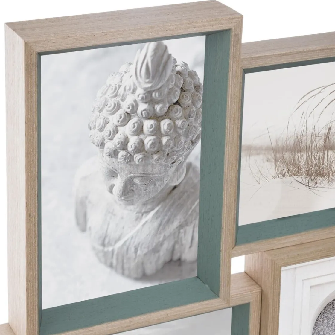 Réalisé en fibres de bois à l’aspect bois clair, ce pêle-mêle « Moly » vous permettra d’exposer une sélection de 9 photos souvenirs ou de cartes rapportées de voyage. De format carré, il est composé de cadres vitrés et superposés les uns aux autres, à la verticale et à l’horizontale. Il se mariera idéalement avec des pièces d’artisanat exotique.