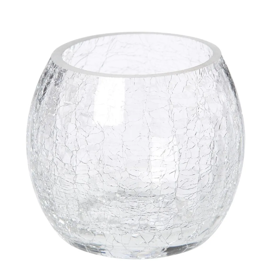Ce photophore en verre craquelé mesure D. 8 x H. 7 cm et pèse 156 g.