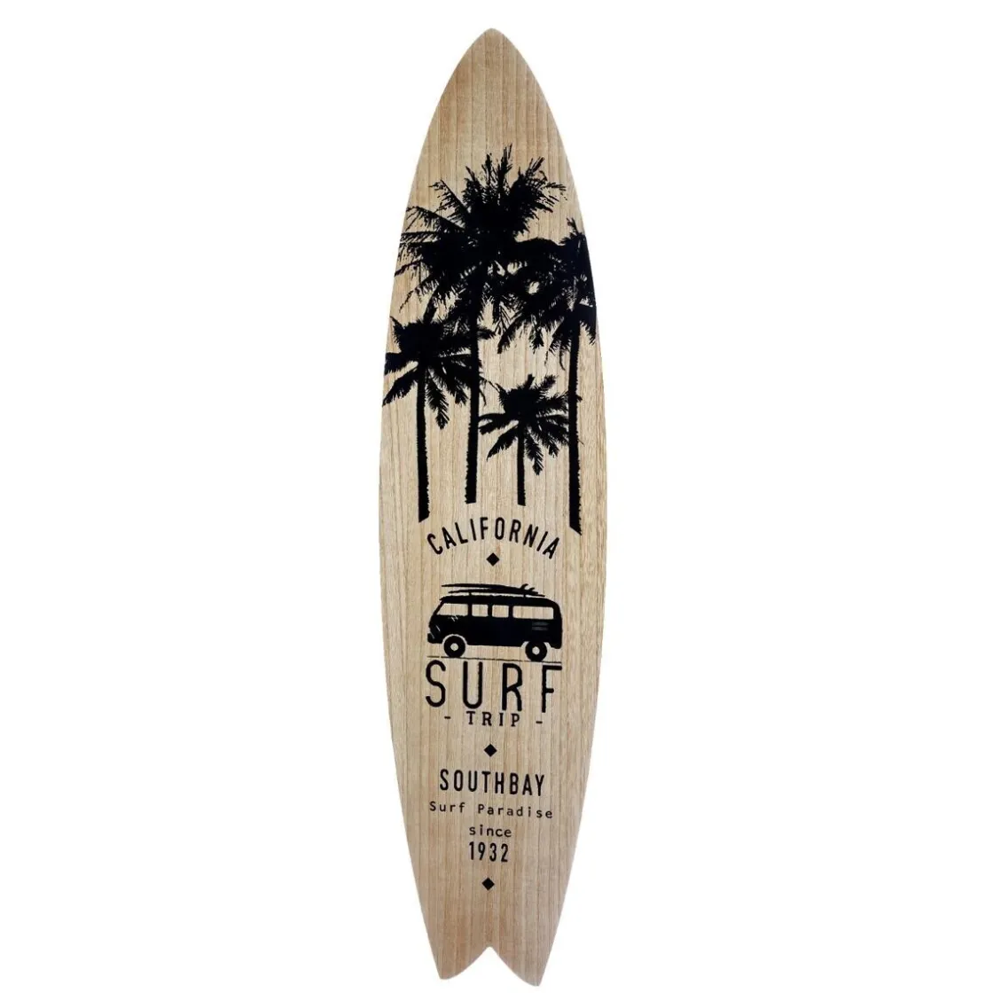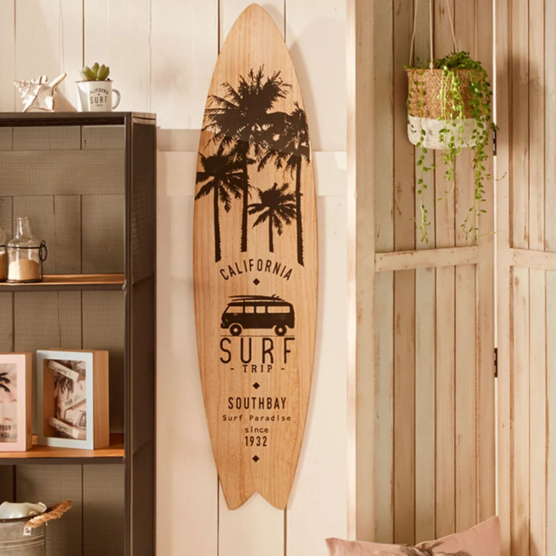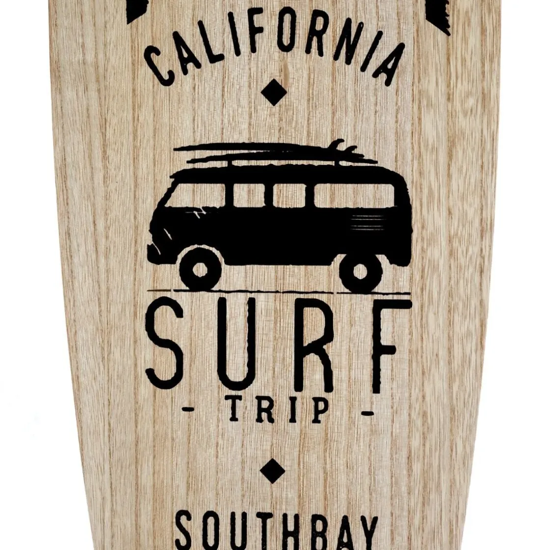 Reprenant le design des longboards californiens, cette planche « South » est réalisée en bois et se fixe au mur grâce à deux accroches en métal. Peinte et illustrée de motifs vintage, elle apportera une touche très chaleureuse sur un mur. Longue de 110 cm, elle constitue une déco murale authentique et intemporelle!