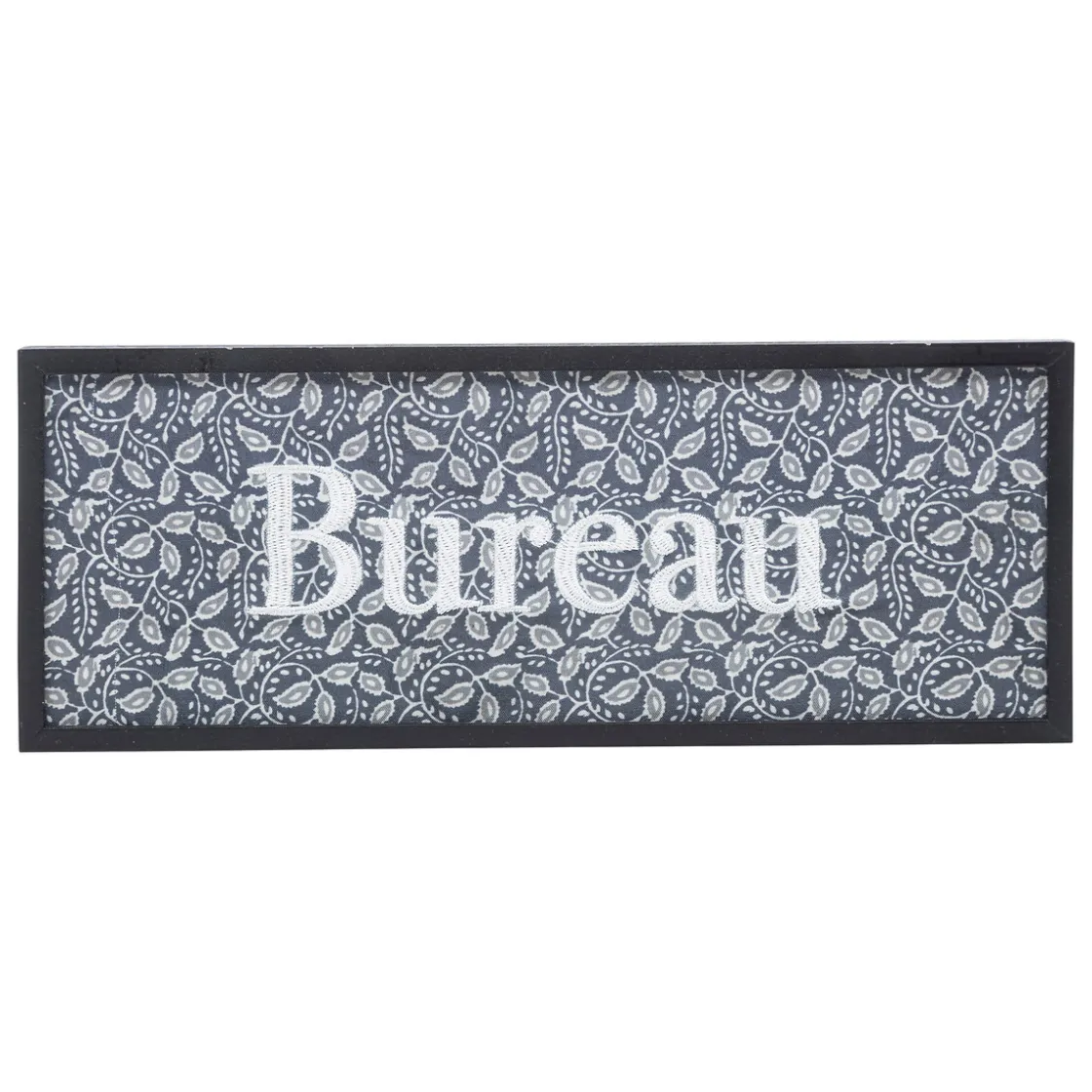 Réalisée en bois, cette plaque de porte rectangulaire se fixe facilement grâce à des crochets et elle offre un fond imprimé de motifs fleuris. Dans une typographie délicate, elle indique le bureau, sur la porte duquel vous pourrez la placercomme l’utiliser en tant qu’objet déco dans votre intérieur.