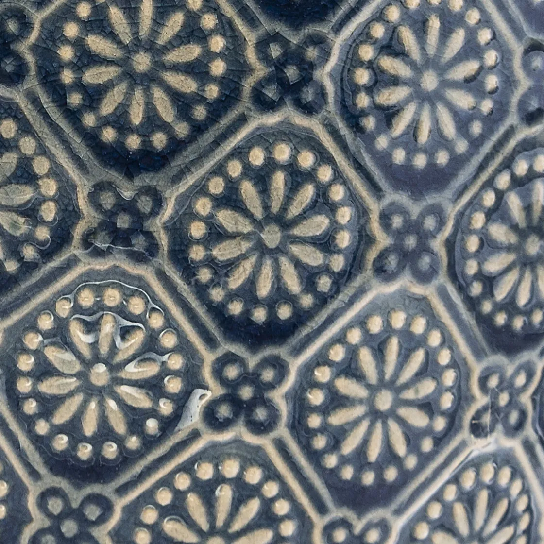Ce charmant cache-pot en grès se distingue par ses petits motifs géométriques. Placées à l’intérieur, vos compositions florales auront tout de suite fière allure. Grâce à sa taille compacte, le pot pourra être posé sur une étagère ou une bibliothèque.