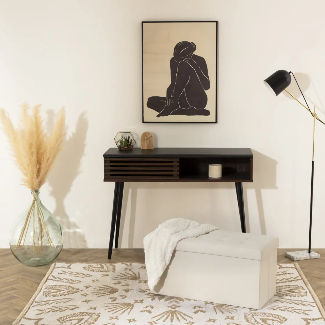Créez un espace cosy en mariant votre pouf « Lysandre » à une table basse en métal Atmosphera ou à une lampe trépied.